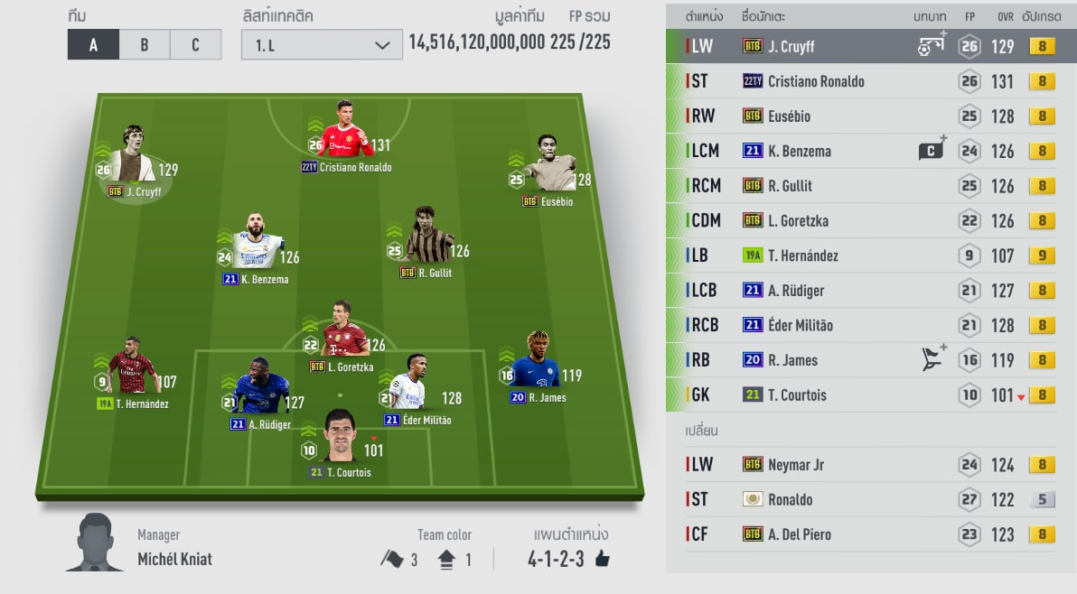 Có thể thấy Johan Cruyff BTB một lần nữa được xuất hiện trong đội hình các cao thủ Thái Lan.
