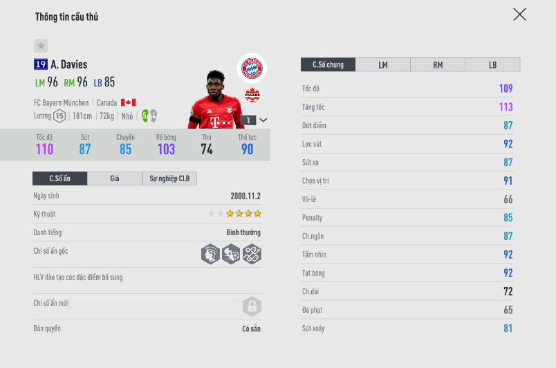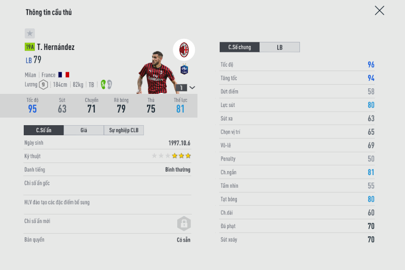 Không cần nói quá nhiều về nhân tố tương đối "quốc dân" cho vị trí hậu vệ trái. Theo sở hữu tính ổn định, sự chắc chắn trong khâu phòng ngự bởi khả năng đua tốc cũng như tì đè cực kì tốt.