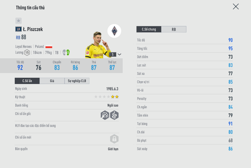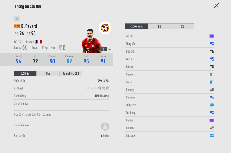 Đặc biệt, với mức lương lên tới 210, các HLV hoàn toàn có thể lựa chọn những hậu vệ cánh chất lượng hơn nhằm hoàn thiện lối chơi một cách triệt để. Hôm nay hãy cùng tìm hiểu top 10 cầu thủ hiện là cái tên được ưa chuộng ở vị trí hậu vệ phải RB thời điểm hiện tại trong FIFA Online 4.