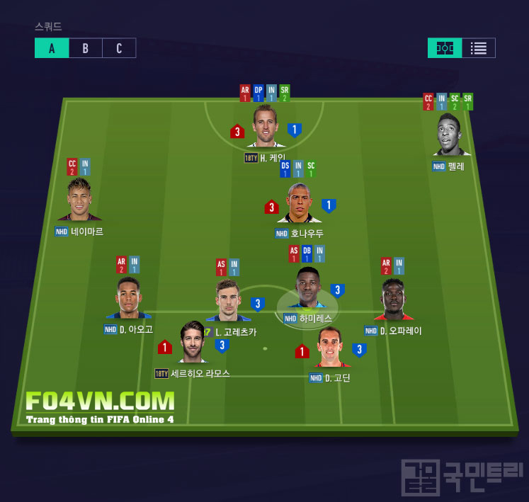 RW : tương tự LM, cũng sử dụng CC2 để luôn chồng cánh bám biên, ngoài ra còn dùng thêm SC2 và SR1 để thi thoảng hỗn trợ di chuyển cũng như hỗ trợ xâm nhập với tiền đạo cắm. Xu hướng công thủ cân bằng 2-2