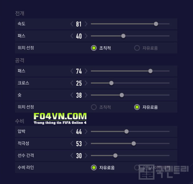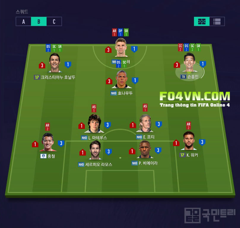 Top 5 rank huyền thoại hàn, chiến thuật và cách vận hành Nhiều bạn nhắc nhiều đến vấn đề hậu vệ ở phiên bản hiện tại có phần ngáo hơn bình thường,vì vậy nhiều bạn muốn gia cố hàng phòng ngự thêm 2 vị trí tiền vệ phòng ngự thay vì 1 như trước đây. Và hôm nay hãy cùng tìm hiểu sơ đồ chiến thuật 4-2-1-3 của top 5 rank hàn Lobby với 2 vị trí tiền vệ phòng ngự xem cách thức vận hành sơ đồ của anh ta ra sao để đạt được hiệu quả nhất cho quá trính leo rank nhé. Sơ đồ chiến thuật 4-2-1-3 Xuyên suốt qua 4 phần sơ đồ của các cao thủ hàn quốc mà mình đã làm và giờ là phần 5 thì có thể thấy rõ rằng đa phần họ đều để các vị trí rất đồng đều, không hề có một vị trí nào sắp xếp bất thường. Từ hậu vệ,tiền vệ cho đến tiền đạo đều đặt đúng vị trí, không kéo lệch hay cho lên xuống thất thường. Mình thấy nhiều bạn hay sắp xếp 2 vị trí tiền vệ phòng ngự 1 là CDM và còn lại là RDM,LDM để có thể kéo vị trí CDM xuống sâu hơn nữa trong sơ đồ và nghĩ rằng như vậy sẽ khiến cầu thủ đứng thấp hoặc ít dâng hơn. Trong khi đó nếu nhìn sơ đồ này bạn thấy 2 vị trí tiền vệ phòng ngự Lobby đều để RDM,LDM rất bằng nhau. Lý giải cho điều này, thật ra việc kéo các vị trí phòng ngự xuống thấp không có nghĩa là các vị trí này đứng lùi sâu hoặc chịu ở nhà hơn khi phòng ngự và ngược lại, để cao hơn một chút cũng không có nghĩa là các vị trí này sẽ dâng lên cao hơn. Nếu bạn để 1 trong 2 vị trí tiền vệ phòng ngự là CDM, việc phạm vi hoạt động rộng hơn hẳn LDM hoặc RDM sẽ khiến vị trí này dâng quá cao hoặc dạt sang 2 bên nhiều hơn là đứng trung tâm. Sẽ có những lúc CDM của bạn dạt sang chơi cùng RDM hoặc LDM khiến cho vị trí của a ta để trống dẫn đến đối thủ tận dụng và ghi bàn. Vì vậy việc để RDM và LDM sẽ giúp 2 vị trí không chồng lên nhau. Thay vào đó là phòng ngự từng khu vực tạo nên thế phòng thủ 2 tiền vệ ngay trước mặt bộ tứ hậu vệ. Đó là điều các bạn cần lưu ý. Còn lại hãy sắp xếp bình thường.   Chiến thuật cá nhân 4-2-1-3 ST: ST sử dụng AR1 và SR1 để chạy chỗ thông minh và xẻ nách đối thủ tốt hơn. Cùng với đó DP1 để luôn pressing hàng phòng ngự gây áp lực trực tiếp lên đối thủ. Với lối chơi của Lobby thì 2 vị trí cánh có 2 cách thức vận hành hơi khác nhau một chút. LW: DS2 để luôn đợi bóng ở trên, ít di chuyển về quá sâu. SR1 và SC1 để hướng di chuyển chéo về phía trung lộ chơi hỗ trợ tiền đạo cắm ở trên trong việc làm tường ban bật. RW: DS2 để đợi bóng ở trên, tuy nhiên RW lại sử dụng CC2 và SC2 để di chuyển bám cánh hơn, giúp hỗ trợ tiền đạo cắm tốt trên phương diện tạt cánh đánh đầu. Với SR1 để di chuyển thông minh hơn, xuyên phá hàng phòng ngự tốt hơn để có nhiều không gian thuận lợi tạt bóng. CAM: DS2 cũng là để đợi bóng, hạn chế lui về và SR1 để luôn sẵn sãng xâm nhập từ tuyến 2 tạo nên thế tấn công 4 người cùng với ST,RW,LW . Luôn sẵn sàng trừng phạt đối thủ thay ST khi cần thiết. Xu hướng công thủ 3-1 tới từ cả 4 vị trí tấn công trên để các cầu thủ luôn có mặt trong những pha tấn công cũng như phản công của đội bạn. LDM,RDM: xu hướng công thủ 1-3 giúp 2 vị trí này ít dâng cao tham gia tấn công làm hổng phòng ngự. Cùng với AS1 sẽ giúp cầu thủ giữ vị trí trên sân tốt hơn RB,LB: AR2 sẽ hạn chế việc dâng lên quá cao của 2 vị trí phòng ngự cánh thay vào đó là ở nhà nhiều hơn để hỗ trợ phòng thủ. CB: không có bất kì chỉnh sửa nào. Việc 4 hậu vệ và 2 tiền vệ phòng ngự đề có xu hướng công thủ 1-3 sẽ tạo nên một thế trận phòng ngự 6 người vô cùng dày đặc, sẽ tạo nên sự khó khăn rất lớn cho mọi đối thủ trong việc tìm đường đi vào khung thành đội bạn. Chiến thuật tổng quát 4-2-1-3 Tổng quát: Với việc phòng ngự số đông thì chơi phản công chính là thế mạnh của sơ đồ này. Vì vậy tốc độ chơi 81 sẽ giúp những pha tấn công được triển khai nhanh hơn. Chuyền 40 sẽ giúp khoảng cách các vị trí trên sân không quá xa nhau và cũng không quá gần nhau. Lối chơi tổ chức sẽ khiến hàng phòng thủ đứng trên sân khoa học hơn. Di chuyền đều ít bỏ vị trí  hơn. Tấn công: Chuyền bóng ở mức 74 sẽ khiến việc lao lên đón các đường chuyền của các cầu thủ là nhanh hơn khi tham gia tấn công. Cùng với tạt 25 để khiến các tình huống tạt ngắn hiệu quả hơn và các cầu thủ không lao lên quá cao khi đón các pha chọc khe bổng Q+W. Sút 38 sẽ giúp các vị trí tập trung hơn trong khu vực vòng cấm để có nhiều sự lựa chọn để dứt điểm hơn. Lối chơi tự do để gia tăng sự linh hoạt khi CAM có thể băng lên chơi như tiền đạo khi ST của bạn không kịp tham gia tấn công hoặc đứng sau hộ công. Phòng ngự: gây áp lực 44 và quyết đoán 53 giúp hàng phòng ngự của bạn ít dâng lên cướp bóng mà đứng vị trí đợi bóng tới và tranh chấp. Cùng với biên
