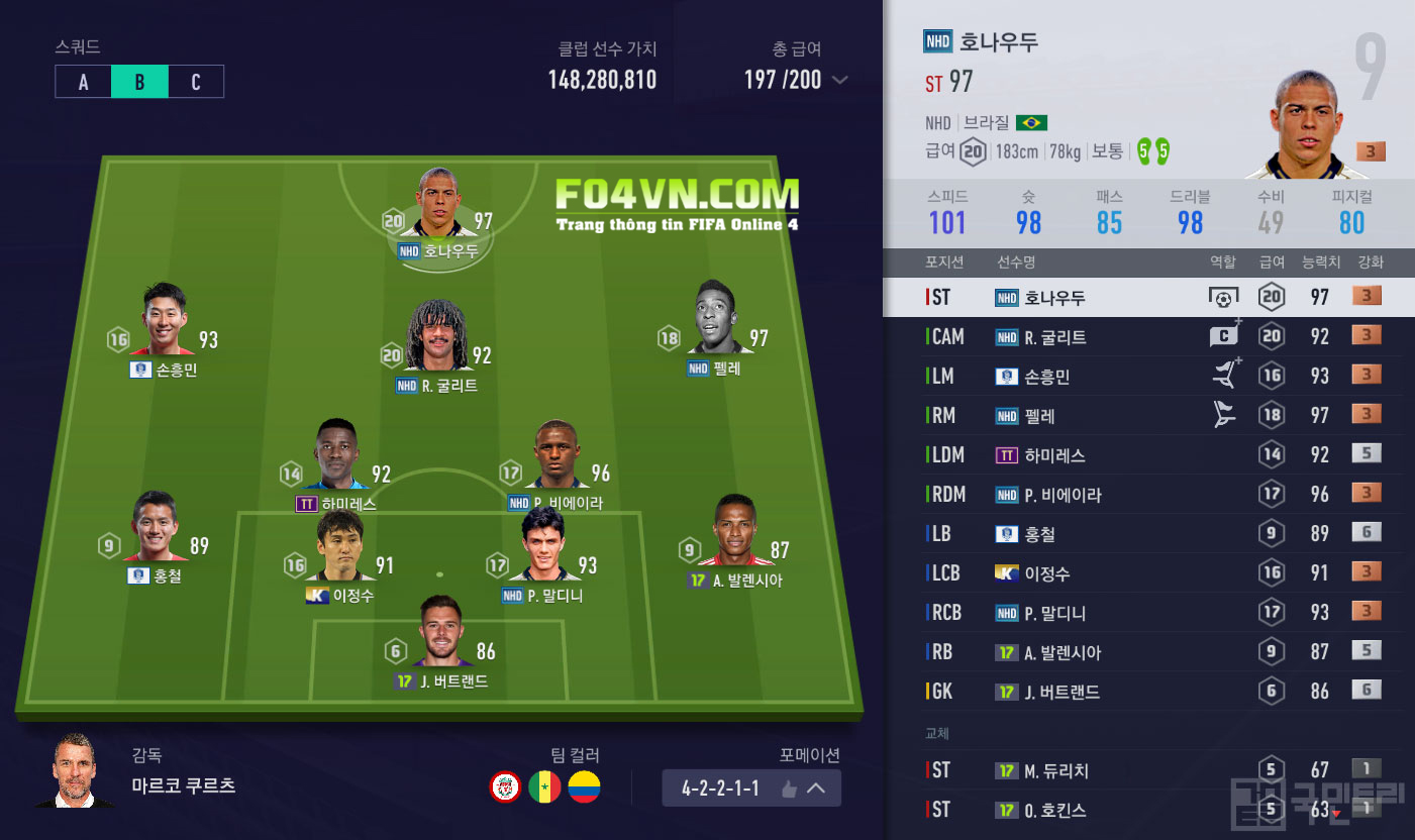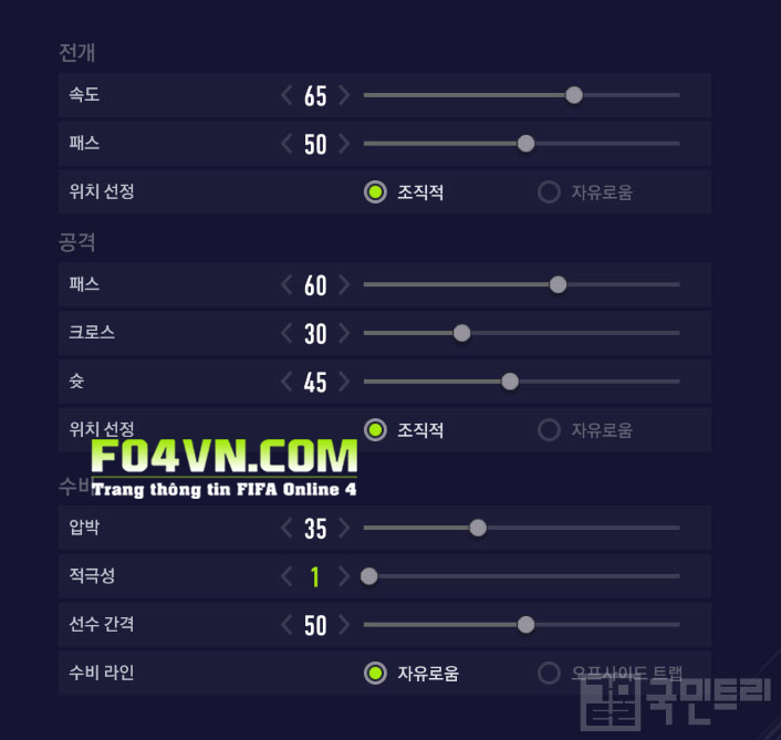 Tiếp tục với seri leo rank huyền thoại cùng cao thủ hàn, hôm nay chúng ta sẽ đến với một trong những sơ đồ đội hình được thịnh hành bậc nhất trong bóng đá đương đại, Sơ đồ 4-2-2-1-1. Và hôm nay hãy cùng Dani Alicia tìm hiểu về những chia sẻ về đội hình của anh ta,cách thức vận hành để có thể lên cao tại rank xếp hạng 1 vs 1. Sơ đồ chiến thuật Sơ đồ khá thuần tuý, không hề có bất cứ sự chỉnh sửa khác biệt nào. Với sơ đồ 1 tiền đạo cắm ST. Phía sau là 3 vị trí sẵn sàng hỗ trợ bao gồm CAM, LM, RM. Bao quát bên dưới là 2 RDM,LDM và dưới cùng là bộ tứ hậu vệ. CAM được coi là vị trí hỗ trợ cũng như xâm nhập vòng cấm cùng với ST. Vì vậy việc lựa chọn cầu thủ CAM nên chọn những cầu thủ có bộ chỉ số đá tốt cả những vị trí CF,ST đê luôn sẵn sàng đá như một tiền đạo ảo nếu cần. LM,RM cần những cầu thủ tốc độ, có khả năng qua người và tạt bóng tốt để đa dạng hỗ trợ tấn công. LDM,RDM hãy chọn những cầu thủ có bộ chỉ số công thủ toàn diện, khả năng hỗ trợ lẫn nhau tốt. CB,LB,RB thì tuỳ thuộc lối đá của bạn để lựa chọn. Chiến thuật cá nhân Tiền đạo ST là vị trí duy nhất trên hàng công để xu hướng công thủ 3-1. Bên dưới là CAM với xu hướng công thủ mặc định 2-2 và SC1 để hỗ trợ chạy chỗ cùng với ST khi tham gia tấn công. LM,RM chủ yếu để bám biên với CC2 và thực hiện những đường chuyền, tạt bóng và tấn công từ biên vào. RDM,LDM để mặc định để di chuyển công thủ và bao sân tốt. CB để xu hướng công thủ 1-3 để luôn ở nhà, hạn chế tối đa dâng lên để hổng vị trí. RB.LB để mặc định để có thể lên tấn công cũng như phòng ngự khi cần thiết. Chiến thuật tổng quát  Tổng quát: Tốc độ 65 để duy trì lối chơi tấn công cũng như phản công tốc độ. Chuỳen 50 sẽ giúp duy trì cự li đội hình ở mức vừa phải, các vị trí đứng đồng đều hơn. Lối chơi tổ chức giúp các vị trí di chuyển cân bằng, tránh việc đảo vị trí không cần thiết. Tấn công: Chuyền 60 và tạt 30 sẽ hỗ trợ khả năng di chuyển của các cầu thủ tốt hơn. Cùng với sút 60 sẽ gia tăng việc sút bóng từ phạm vi tầm trung của các cầu thủ tiền vệ hơn thay vì chui quá sâu vào vòng cấm. Lối chơi tấn công tổ chức sẽ là hợp lý với sơ đồ này, tránh việc tiền đạo duy nhất của bạn dạt cánh hoặc các cầu thủ cánh bám trung lộ quá nhiều. Phòng ngự: Gây áp lực 35 và quyết đoán mức 1 sẽ khiến các cầu thủ đứng thấp,phòng ngự bị động và cắt bóng khi thực sự cần thiết. Cùng với đó là việc vây chặt khu vực vòng cấm sẽ khiến đối thủ trở nên khó khăn trong việc tấn công vào. Biên độ 50 sẽ giữ cự ly phòng ngự ở mức vừa. Tránh việc đứng quá sát dẫn đến việc giẫm chân cản trở nhau gây rối phòng ngự. Lối phòng thủ tự do sẽ giúp các vị trí hỗ trợ phòng ngự cho nhau tốt hơn.