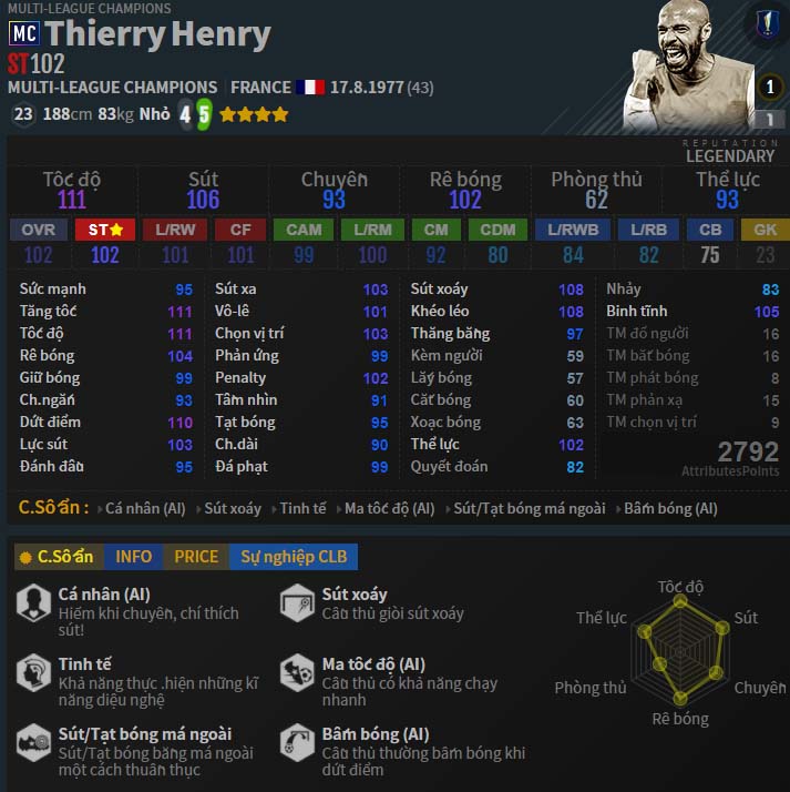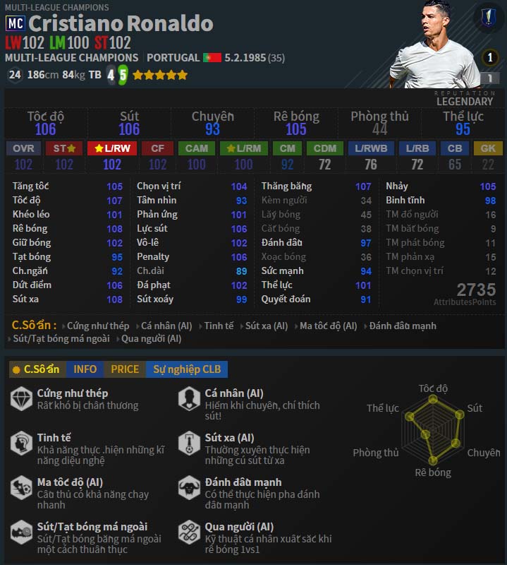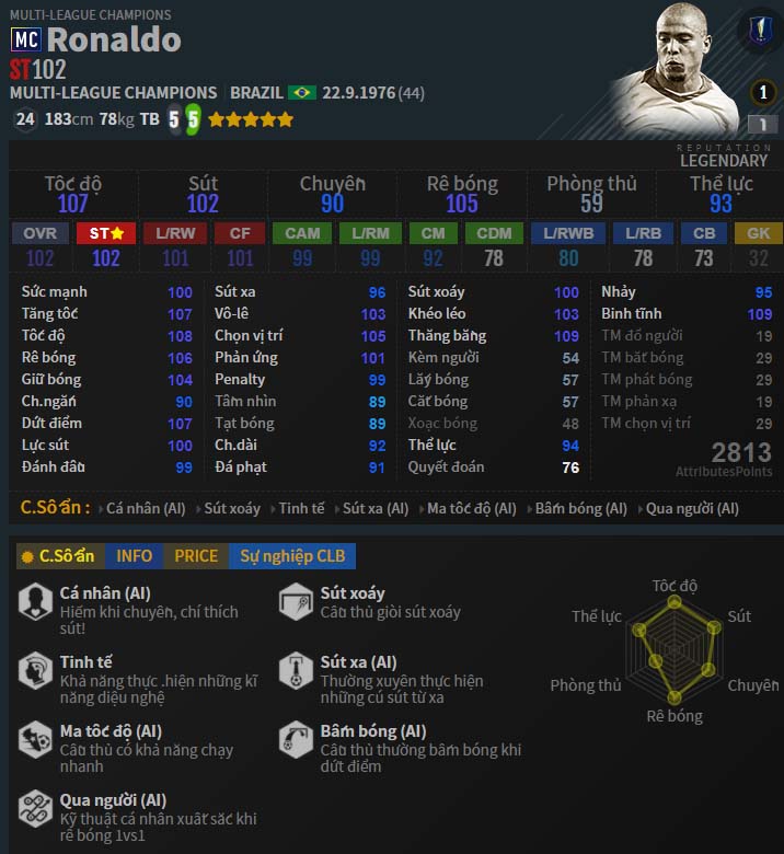 Danh tiếng cũng như năng lực trong game của Rô béo đã không còn phải bàn cãi, đây quả thực là tiền đạo mà bất cứ ai cũng mong muốn sở hữu trong đội hình. Tất nhiên bạn không nhất thiết phải dùng mùa giải MC, Rô LH hay HOT vẫn rất hay.
