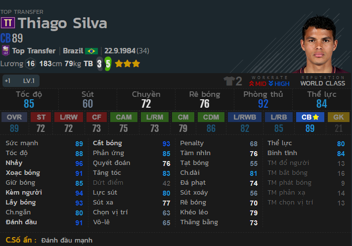 Được đánh giá cực cao trong khả năng phòng ngự bởi các game thủ Hàn Quốc, Thiago Silva thể hiện được sự hiệu quả cực kì cao khi Silva luôn có những tình huống tắc bóng hay xoạc bóng rất tốt. Tốc độ cao, phản ứng tốt tuy nhiên trong game khả năng phản ứng trong các tình huống cản phá của Silva là rất nhanh,quyết đoán và chính xác. Khả năng đánh đầu cũng như cản phá những pha không chiến của Silva là xuất sắc tuy với thể hình không quá to cao nhưng những pha bật nhảy của Silva lại rất tốt, cùng với đó là khả năng chọn vị trí chuẩn xác để cản phá những pha bóng bổng đầy nguy hiểm.Khả năng phản ứng cản phá những tình huống nguy hiểm trong vòng cấm của Silva là rất tốt, luôn chủ động và có sự chính xác rất cao. Một trong những trung vệ cản phá xuất sắc nhất trong game.