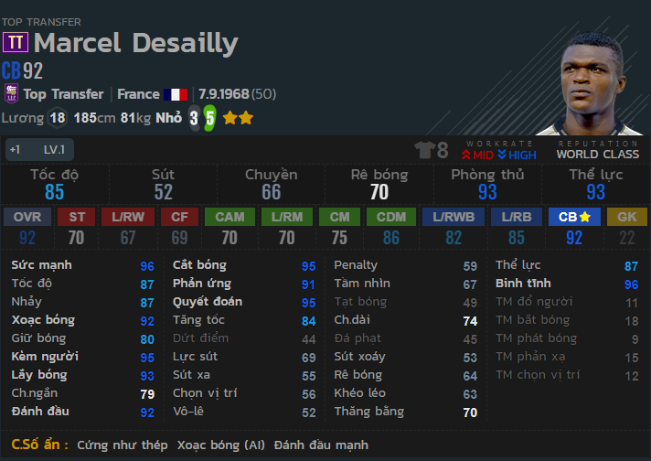 Khả năng phòng ngự của Desailly là rất tốt, trong đó có một điểm mạnh của Desailly khiến anh trở nên xuất sắc đó là khả năng chủ động cắt bóng trong những tình huống tấn công của đối thủ. Nếu trong tư thế thuận lợi Desailly rất chủ động vào bóng một cách rất rát để cướp bóng dù là trong hay ngoài vòng cấm một cách rất chính xác. Điều đó đặt đối thủ vào tình trạng luôn phải nghĩ cách xử lý bóng thật nhanh hoặc sẽ mất bóng. Khả năng cản phá vòng cấm cũng là rất tốt.
