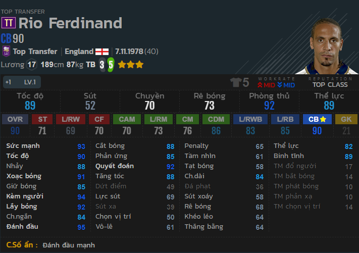 Di chuyển nhanh và khả năng chọc chân cướp bóng của Rio cũng rất tốt. Cùng với đó là khả năng xoạc bóng rất xuất sắc. Không chiến của Rio rất mạnh với chiều cao khá lý tưởng, khả năng đánh đầu rất tốt. Khả năng chặn bóng và xoạc bóng trong phòng cấm là rất tốt đặc biệt là tốc độ phản ứng của rio