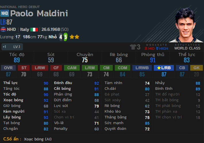 Khả năng phòng ngự của Maldini là rất tốt, từ cắt bóng, cản phá, đánh đầu đều hoàn thành một cách vô cùng xuất sắc. Điểm mạnh làm nên thương hiệu của Maldini là khả năng xoạc bóng. Khả năng xoạc bóng của Maldini là rất xuất sắc, cho dù là xoạc bóng từ phía sau hay trước mặt thì đều có độ chính xác cao và rất ít khi xảy ra lỗi dẫn đến phạm lỗi hay phạt thẻ.