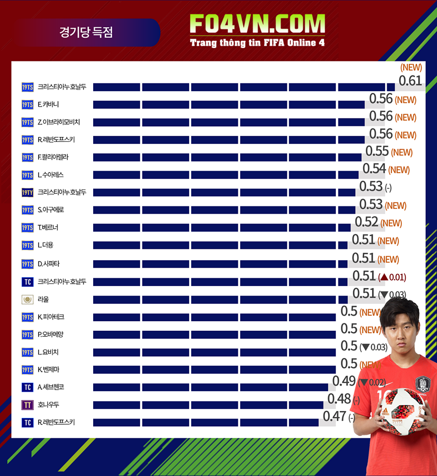 Thời gian vừa qua, mùa 19TS đang làm mưa làm gió ở FIFA Online 4 trên khắp các server từ Trung Quốc, Hàn Quốc, Thái Lan cho đến Việt Nam. Sự xuất hiện của mùa giải 19TS với chỉ số cực kì nổi bật kéo theo nhiều sự soán ngôi trên các bảng xếp hạng FIFA Online 4. Và bảng xếp hạng top 20 chân sút cũng không ngoại lệ.