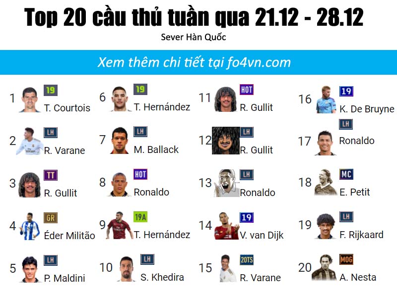 Như vậy là sau hơn 1 tuần trải nghiệm gameplay mới của sever Hàn Quốc. Xu thế sử dụng cầu thủ trong đá xếp hạng cũng đã có sự thay đổi một cách rõ rệt hơn so với trước đây, mà cụ thể là tuần trước đó 21.12.2020