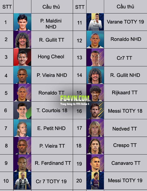 Hiện tại mùa giải GR mặc dù đã ra mắt được hơn 1 tháng, tuy nhiên sự lựa chọn cho đến lúc nãy vẫn thuộc về mùa giải cũ với sự chắc chắn đã qua kiểm chứng. Vẫn là những khuôn mặt quen thuộc như Vieira, Gullit, Ronaldo, Petit, những con hàng quốc dân nhà nhà sử dụng.