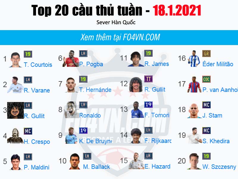 Một tuần mới lại đến và Fo4vn xin gửi tới các bạn top cầu thủ của tuần qua. Tính đến 18.1.2021