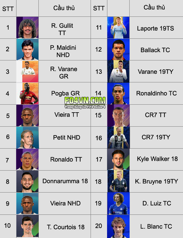 Top 20 cầu thủ trong xếp hạng 1-1 của tháng 7