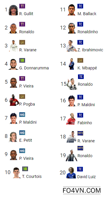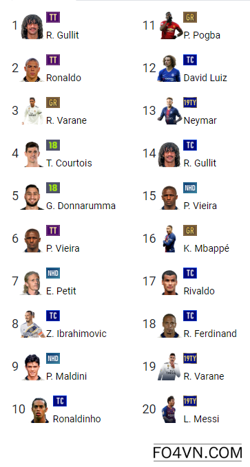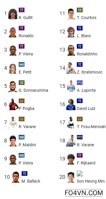 - So với tháng trước 3 vị trí dẫn đầu thuộc về bộ 3 quốc dân mùa TT là Gullit, Ronaldo và Vieira