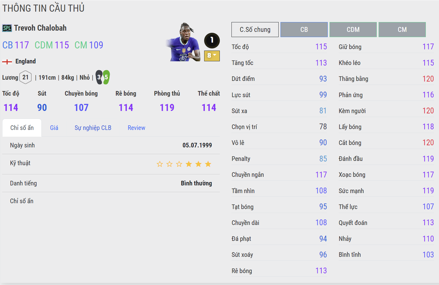 Nếu các HLV đang muốn xây dựng team color đương đại cho Chelsea hay muốn đổi gió với một trung vệ trẻ, khỏe ,đa năng thì Chalobah là cái tên rất đáng được quan tâm. Thể hình tốt, tốc độ ổn cùng với khả năng tì đè tranh chấp rất khỏe là những ưu điểm đầu tiên khi nhắc về Chalobah SPL. Không những vậy, kỹ năng chuyền bóng và xử lý bóng của Chalobah là rất tốt. Cầu thủ người Anh còn có thể chơi ở vị trí CDM nếu cần và vẫn phát huy được tiềm lực một cách tốt nhất.