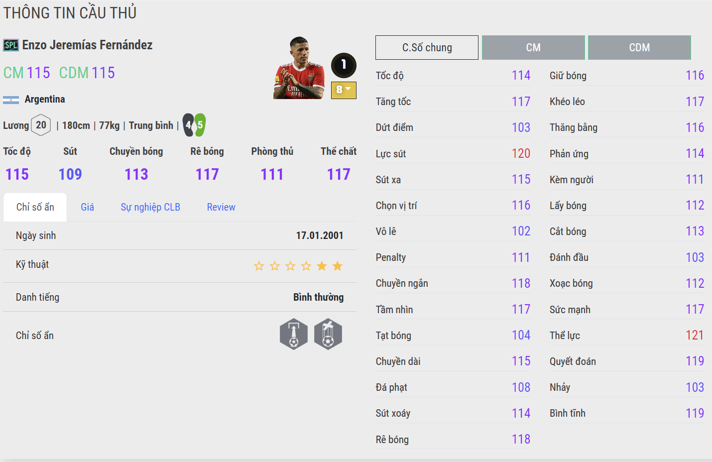 Tiền vệ người Argentina đang được xem là một trong những cầu thủ đa năng ở thời điểm hiện tại. Khả năng sút xa rất ổn cùng bộ kỹ năng chuyền bóng rất tốt giúp cho Enzo ở mức thẻ cộng 8 cho thấy được sự nguy hiểm khi tham gia tấn công. Không những vậy, khả năng phòng ngự của Enzo cũng là rất tốt. Điều này giúp cầu thủ người Argentina trở nên toàn diện và được đánh giá rất cao ở thời điểm hiện tại.