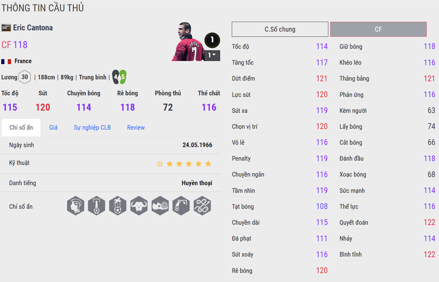 Khí chất hoàng đế, lối chơi dũng mãnh và những cú sút như búa bổ. Cantona NO.7 mang đến hình ảnh một trung phong cổ điển pha lẫn chất nghệ sĩ đầy khó đoán. Phù hợp với những HLV yêu thích mẫu tiền đạo tự do, đầy bùng nổ.