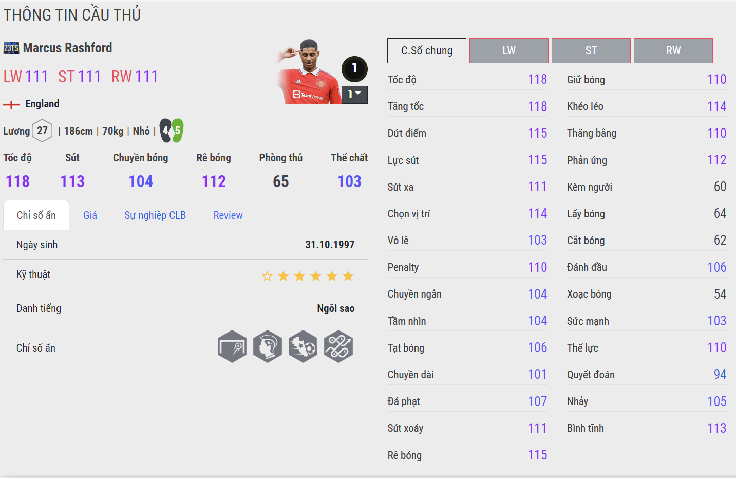 Dù thời điểm hiện tại có thể thấy rõ phòng độ của Rashford trở nên vô cùng tệ, nhưng trong FC Online, Rashford 23TS có đầy đủ yếu tố của một chân chạy cánh hàng đầu từ thể hình ổn, tốc độ tốt, kỹ năng dứt điểm hiệu quả cùng khả năng rê dắt rất mượt. Không chỉ có vậy, khả năng chuyền bóng ổn cũng giúp Rashford giành được nhiều hiệu quả nổi bật ở hành lang biên.
