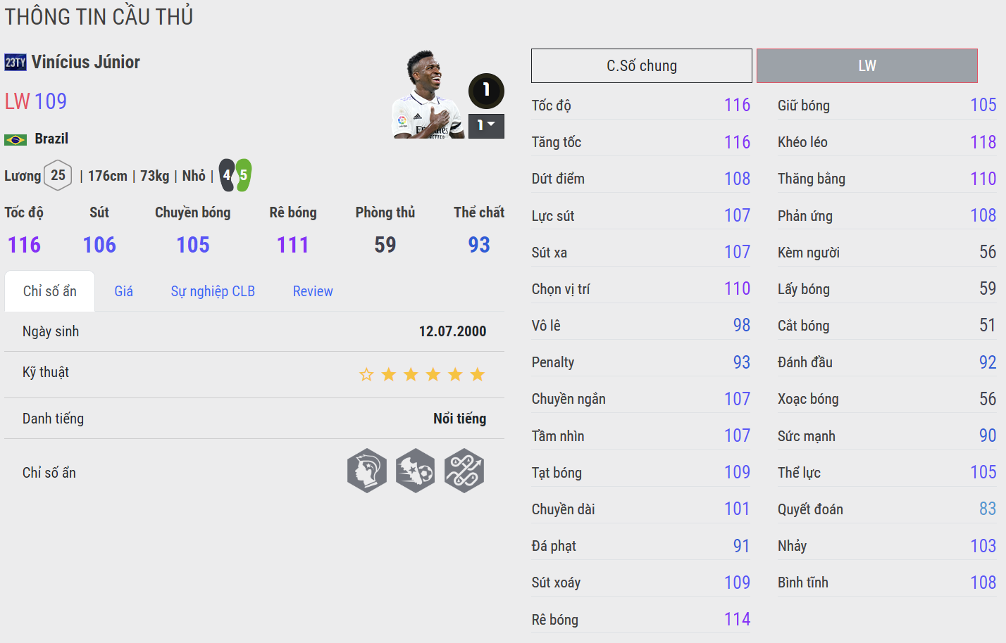 Dù không có AI huyền thoại như những phiên bản sau này nhưng Vinicius vẫn được đánh giá rất cao về mức độ hiệu quả trong FC Online. Sở hữu tốc độ vượt trội, kỹ năng sút bóng tốt, khả năng chuyền ổn định giúp Vinicius trở thành mẫu chạy cánh điển hình và đáng dùng cho team color Real hay Brazil. Điểm mạnh nhất của Vinicius nằm ở bộ kỹ năng rê dắt, xử lý bóng xuất sắc và hiệu quả cho những HLV thích múa skill.
