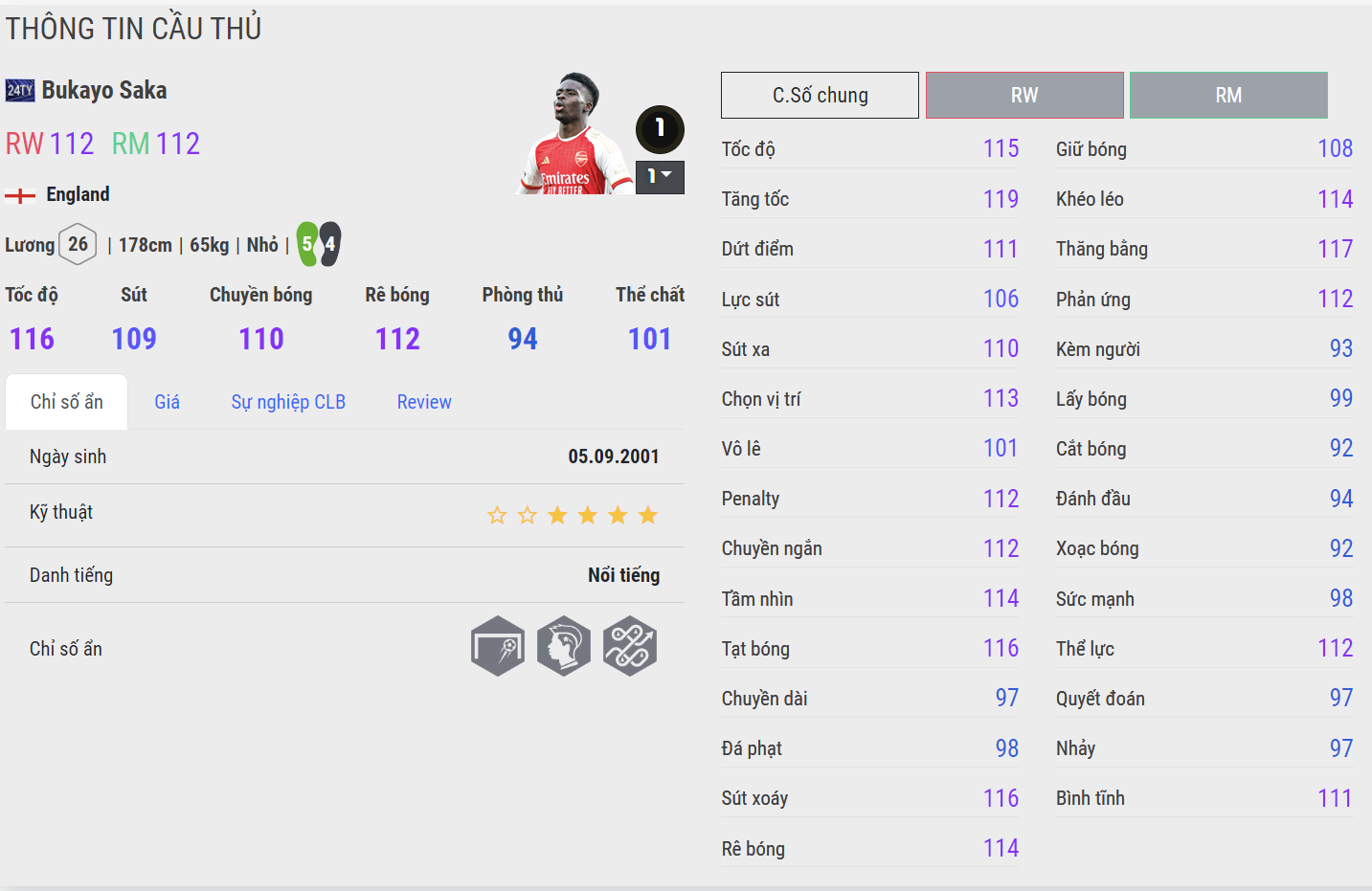 Saka đang là tiền vệ chạy cánh rất đáng dùng cho team color Arsenal. Sở hữu tốc độ tốt, khả năng rê dắt dẻo và ấn tượng giúp cho việc thi đấu ở hành lang cánh của Saka hiệu quả hơn. Saka chuyền rất ổn, khả năng phối hợp, chuyền bóng cho đến tạt bóng đều đem lại hiệu quả tốt. Ngoài ra, việc cải thiện kỹ năng sút cũng giúp Saka trở nên toàn diện hơn khá nhiều.