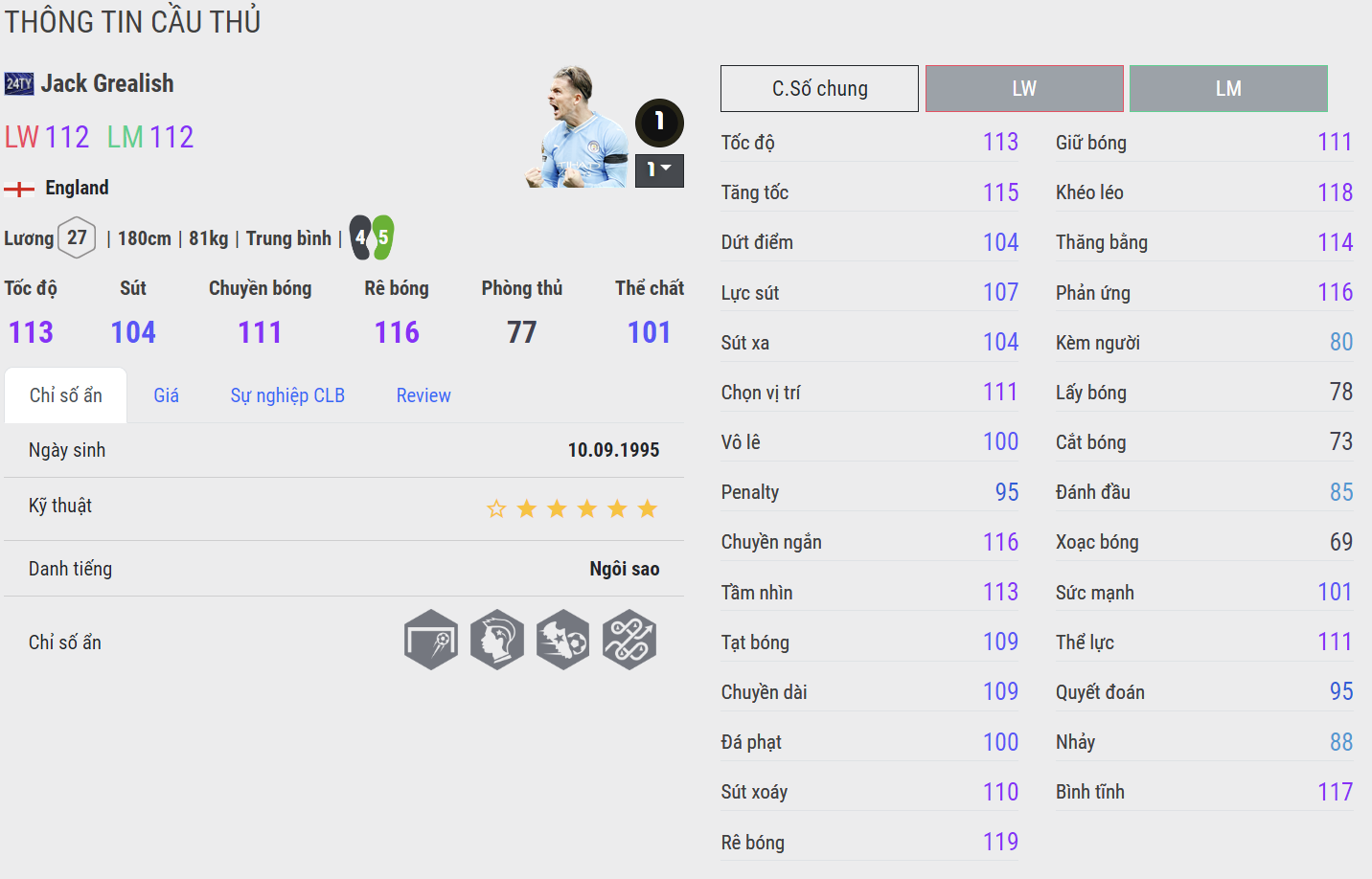 Grealish sở hữu tốc độ tốt, kỹ năng rê dắt và xử lý bỏng rất hiệu quả khiến cho những tình huống xử lý và xâm nhập cánh của Grealish đem đến nhiều lợi thế. Khả năng chuyền bóng của Grealish cũng được cải thiện đáng kể. Thể hình tốt cùng khả năng tì đè hiệu quả giúp cho Grealish trở thành cái tên được lựa chọn và tin dùng cho team color Man City.