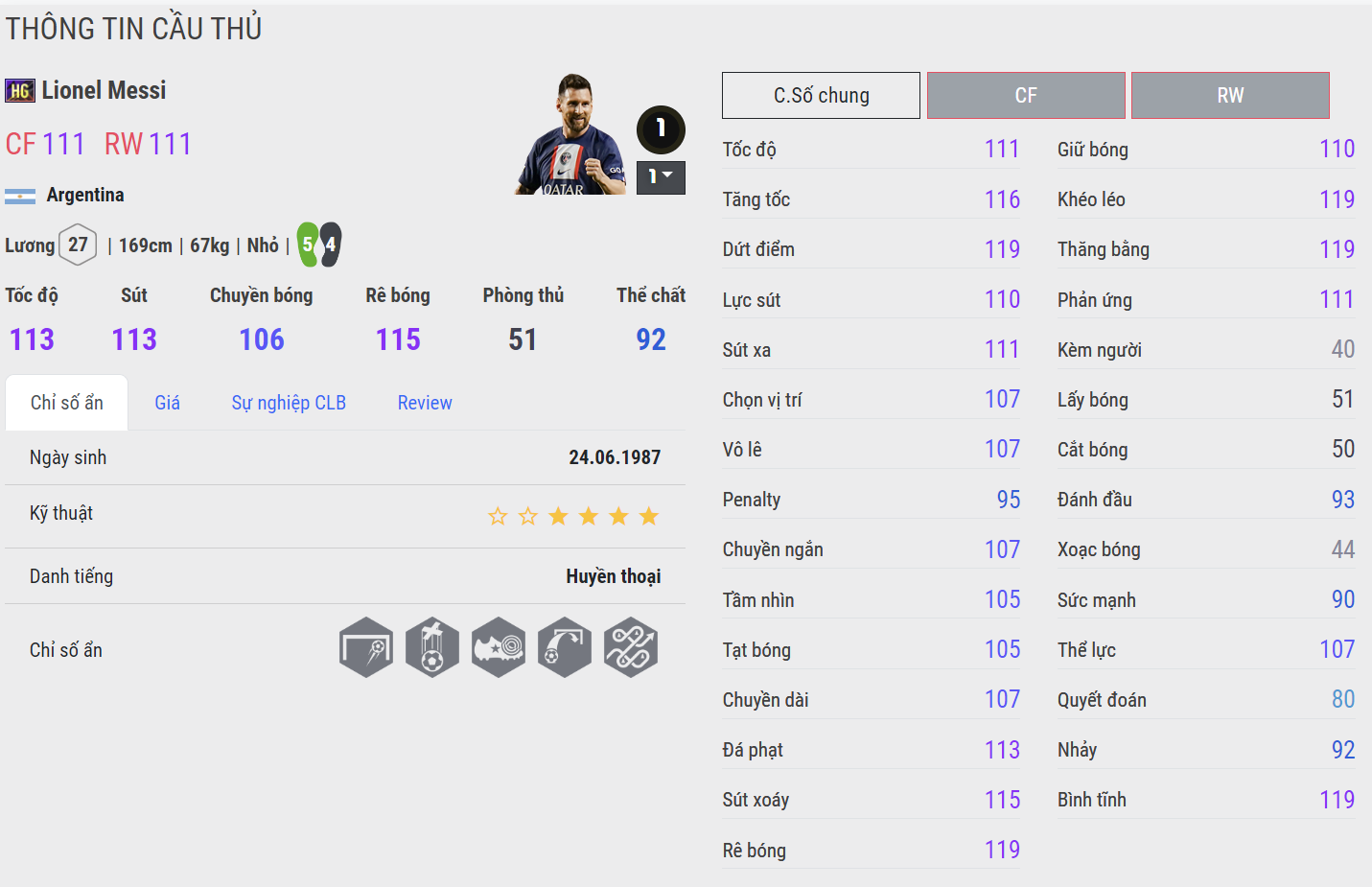 Messi mùa thẻ HG được đánh giá là một phiên bản có chi phí tốt, dễ tiếp cận và hiệu quả trong FC Online Sở hữu tốc độ và khả năng rê dắt bóng rất tốt, Messi còn có khả năng dứt điểm, sút xa và ZD cực kì bá đạo. Khả năng chuyền bóng cực kì hay cũng giúp Messi trở thành cái tên đáng dùng trên hàng công của team color Barca, PSG hay Argentina.