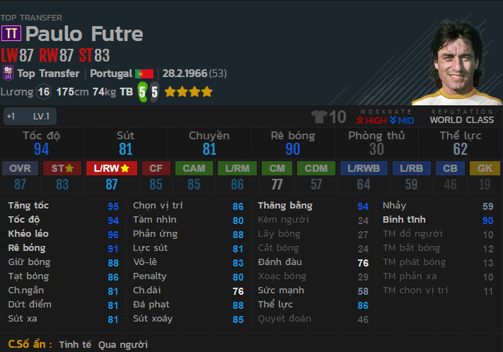 Vô cùng nhanh nhẹn và linh hoạt, Futre TT chính là bản nâng cấp vô cùng chất lượng từ phiên bản Futre NHD. Mức lương 16 là ổn so với 1 vị trí tấn công trong đội hình.