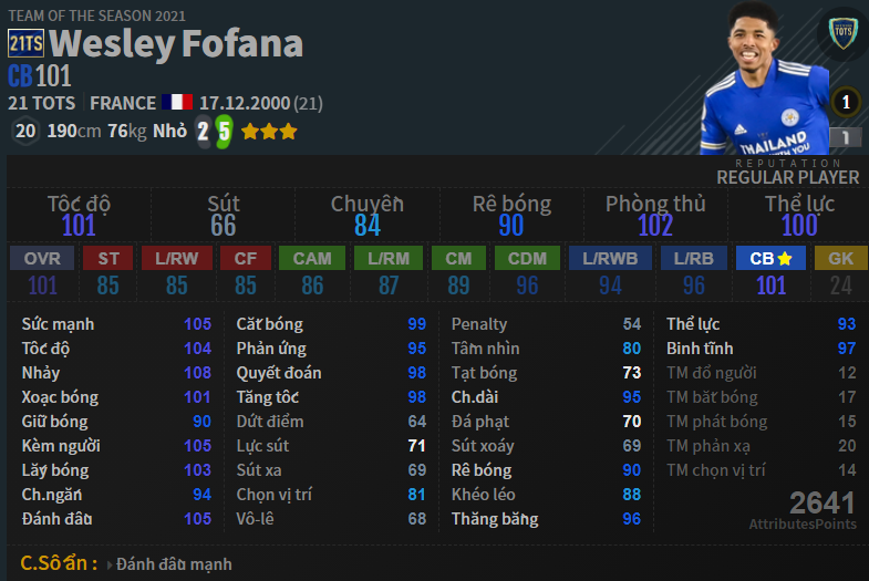Thêm một hậu vệ từ nước Pháp, với chiều cao 1m90. Tốc độ sẽ là điểm mạnh của Fofana, thêm vào đó sải chân dài sẽ giúp cho hậu vệ của Leicester City gây ra những khó chịu cho đội bạn. Vấn đề là bạn có dám đặt niềm tin vào những nhân tố mới hay không mà thôi