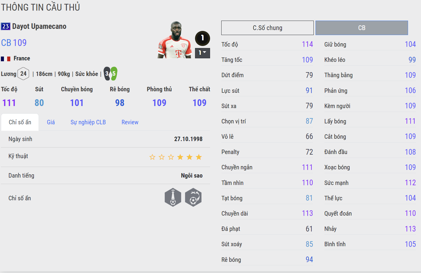 Với vị trí trung vệ, ở meta hiện tại điểm mạnh tốc độ, AI di chuyển thông minh và khả năng đánh chặn tốt là vô cùng quan trọng. Cùng với đó những trung vệ vừa xuất sắc vừa có tiềm năng tăng chỉ số là rất quan trọng ở mùa giải 23UCL vốn là mùa giải nâng chỉ số dựa theo phong độ cầu thủ.