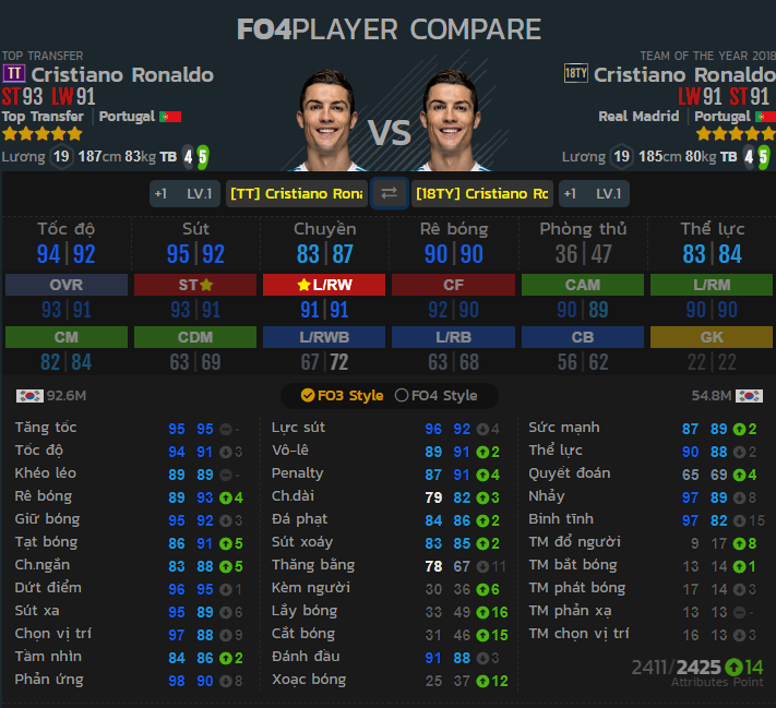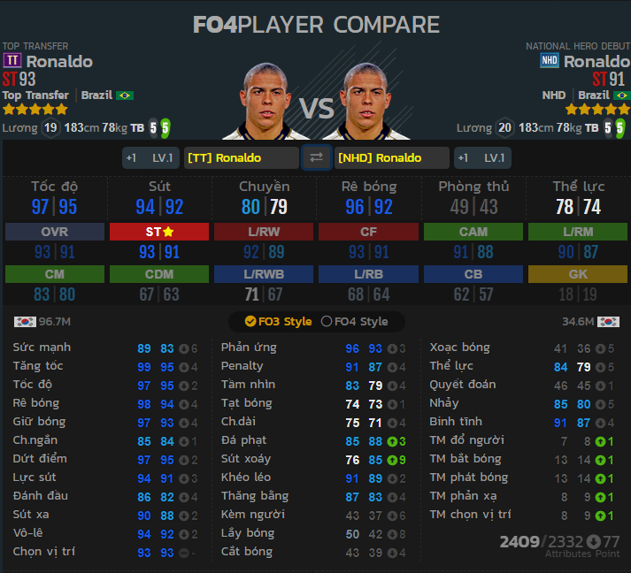 Không quá khó hiểu khi top 1 được dành cho Ronaldo. Không chỉ đơn thuần là 1 trong những cầu thủ được yêu thích bậc nhất trong thế giới bóng đá, Ronaldo De Lima còn cho thấy sự hiệu quả đầy bất ngờ trong game. Bằng chứng về việc hiệu quả của Ronaldo NHD đã được hầu hết các game thủ kiểm chứng và tin dùng từ kỹ năng, khả năng chạy chỗ, tốc độ, tì đè đều tốt. Sang đến thẻ mùa giải TT, Ronaldo có bộ chỉ số tổng quát lên tới 93. Đặc biệt với 3 chỉ số tốc độ, tăng tốc và thể lực được cải thiện đáng kể, Ronaldo TT đích thị là một con quái vật bậc nhất trên hàng công, một con quái vật sẽ làm vừa lòng mọi người chơi FO4 nếu có thể sở hữu thẻ mùa giải này.