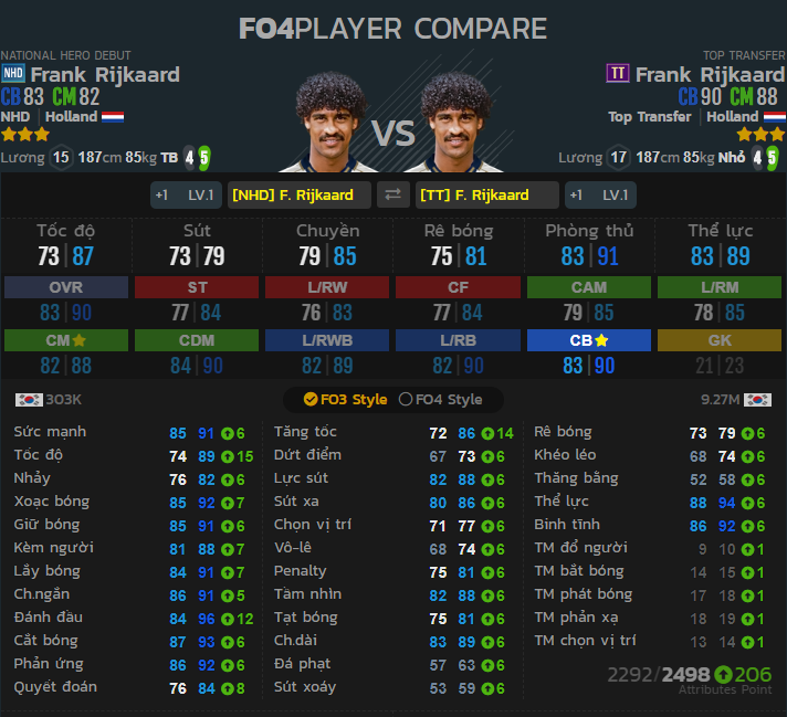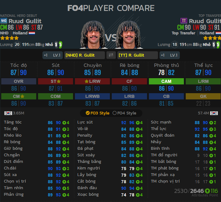 Với việc giảm 2 lương so với mùa giải NHD nhưng lại có bộ chỉ số tổng quát 91, cao hơn so với Gullit TT. Có thể thấy Gullit TT chính là phiên bản Gullit NHD +4. Sự hoàn hảo, toàn diện cũng như mức độ hiệu quả trong game của Gullit NHD vốn đã được kiểm chứng và không có gì phải bàn cãi thì giờ đây với thẻ mùa giải TT, Gullit đã được gia tăng sự lợi hại, khả năng tấn công đã trở nên tốt hơn rất nhiều.