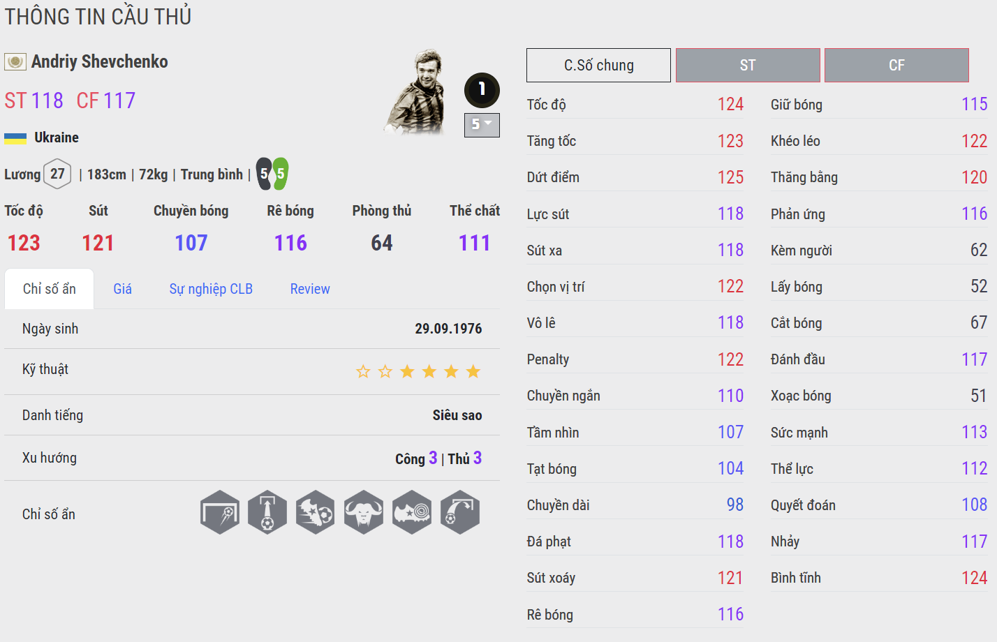 Shevchenko phiên bản ICON vẫn thể hiện sự vượt trội so với các mùa thẻ khác. Ở mùa thẻ này, Sheva gần như hoàn hảo với tốc độ, khả năng dứt điểm đa dạng bằng cả hai chân, kỹ năng chuyền bóng tốt, và thậm chí khả năng không chiến cũng đạt hiệu quả cao.
