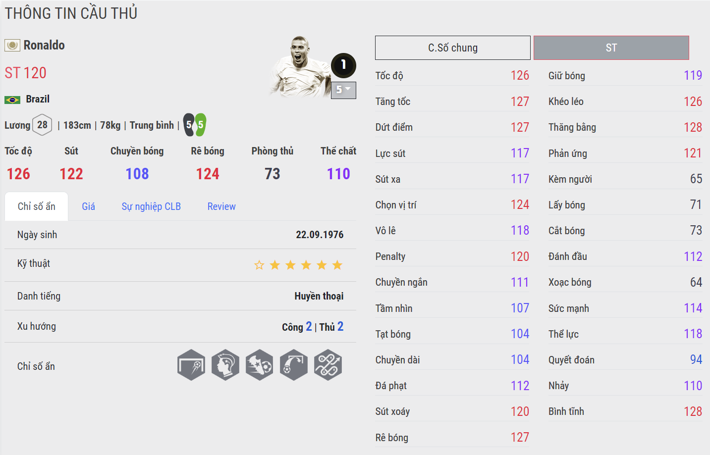 Không cần phải bàn cãi về hiệu quả của "Rô béo" anh luôn là cái tên được săn đón ở mọi mùa thẻ. Tuy nhiên, phiên bản ICON vẫn được đánh giá cao nhất nhờ AI thông minh, khả năng dứt điểm toàn diện, tốc độ tốt, và sức mạnh ấn tượng.