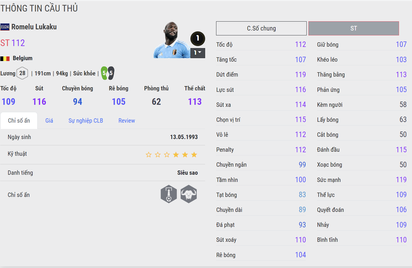 Lukaku được xem là một trong những tiền đạo có sự trưởng thành đáng kể trong mùa giải EU24 với việc sở hữu 2 chân 5 sao. Điều này là một minh chứng cho sự phát triển của anh trong tựa game khi anh thể hiện phong độ ấn tượng trong đội tuyển quốc gia. Đội tuyển Bỉ, nơi Lukaku đang thi đấu, cũng là một ứng cử viên mạnh mẽ, và điều này có thể làm tăng thêm giá trị của anh.