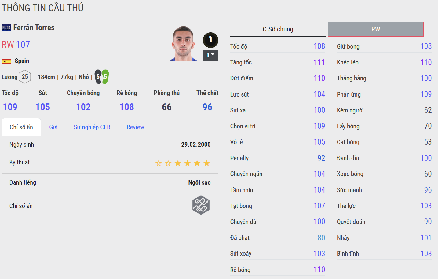 Ferran Torres là một tiền vệ với tốc độ nhanh và khả năng sử dụng cả hai chân ấn tượng. Anh có kỹ năng dứt điểm tốt, chuyền và rê bóng ổn, cùng với đó là những team color nổi bật như Barca, Man City và Tây Ban Nha.