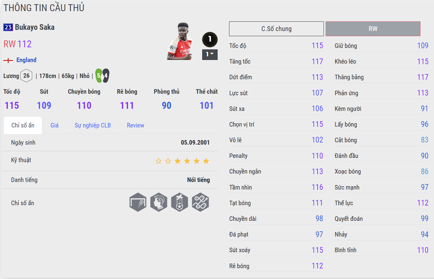 Điểm mạnh của Saka nằm ở khả năng rê bóng dẻo, kỹ năng xử lý bóng trong phạm vi hẹp và thoát pressing rất hay. Ngoài ra cầu thủ người Anh đã dần cải thiện được kỹ năng dứt điểm và ZD của mình. AI di chuyển khá khôn bóng và khả năng tạt bóng ở mức tốt giúp Saka trở thành cái tên chạy cánh đáng dùng cho team color Arsenal.