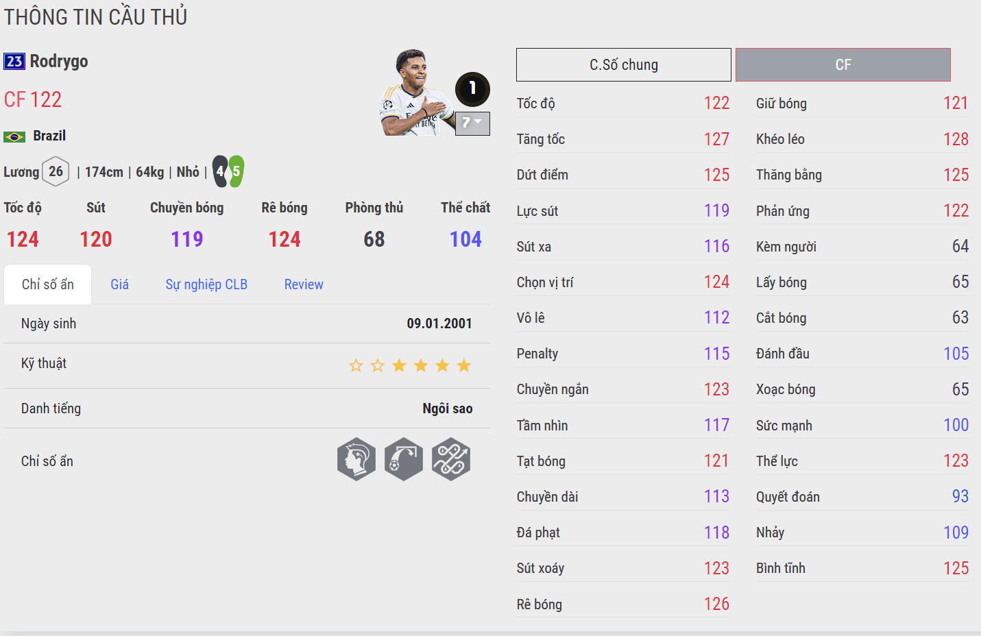 Tiền đạo cánh của Real Madrid được đánh giá rất cao ở mùa thẻ này. Lối chơi bóng tốc độ, kỹ năng sút tốt, khả năng rê bóng hay và đặc biệt là những cú bứt tốc của Rodrygo là cực nhanh và rất khó bị đuổi kịp. Khả năng tạt bóng ổn cùng kỹ năng chuyền bóng và phối hợp nhanh rất hay, Rodrygo là cái tên hàng đầu cho hành lang cánh của Real Madrid mùa giải 23UCL.
