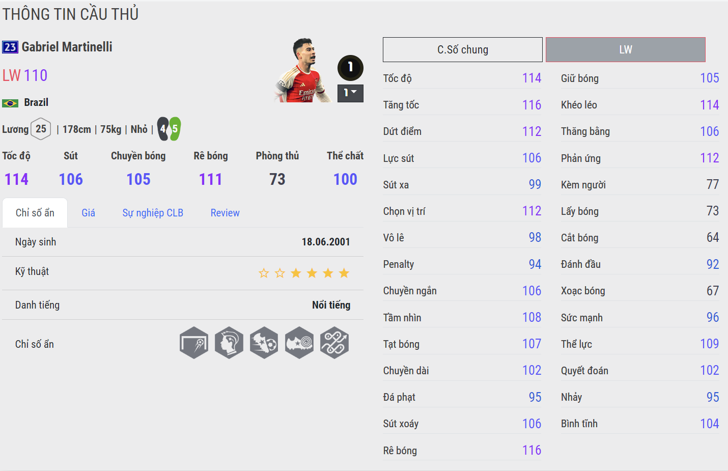 Martinelli là một trong những trụ cột của hành lang cánh trái cho team color Arsenal. Cầu thủ người Brazil có tốc độ rất tốt, kỹ năng dứt điểm cận thành và sút ZD rất chính xác. Tuy nhiên khả năng sút xa lại không thực sự hiệu quả. Được buff đáng kể về khả năng rê dắt xử lý bóng, Martinelli cho thấy sự hiệu quả rõ rệt ở những pha qua người hay xử lý bóng trong phạm vi hẹp. Kỹ năng chuyền bóng, tạt bóng của Martinelli cũng là rất ổn và đem đến hiệu quả cao.