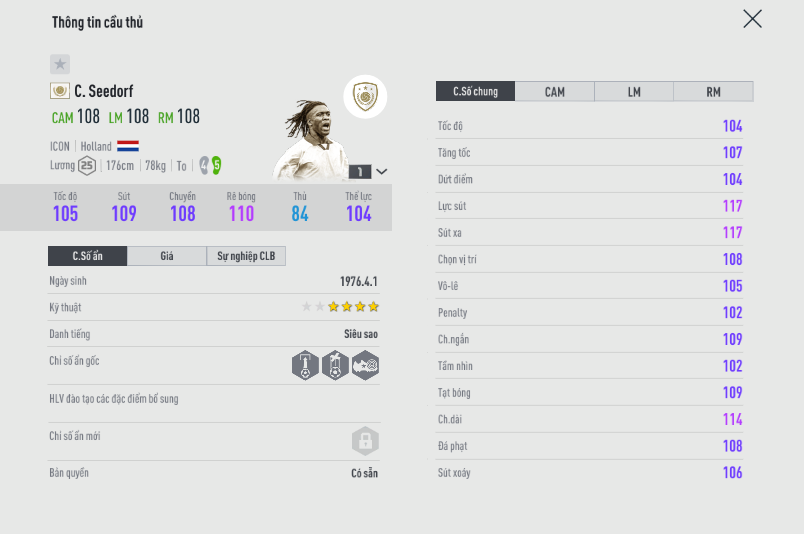 Chưa cần nói đến mùa giải ICON. Ngay những mùa như HOT, MC, LH chúng ta cũng đã thấy khả năng nã đại bác của huyền thoại Hà Lan mạnh thế nào. Đặc biệt ở chế độ giả lập. Cảm giác khi Seedorf sút bóng, khái niệm vòng cấm cần phải mở rộng thành 20m