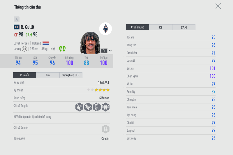 Sẽ có nhiều tranh cãi việc Gullit là tiền đạo chứ không phải tiền vệ. Nhưng có lẽ chúng ta nhớ đến ông ở vai trò một tiền vệ trung tâm nhiều hơn. Và Fo4vn xin được đặt Gullit trong danh sách này, chắc không cần giới thiệu gì về mặt hàng quốc dân này. Quá toàn diện, khi mà mọi kỹ năng dứt điểm đều được hội tụ trên một cầu thủ mà cứ mùa mới ra người ta chỉ biết lắc đầu ngao ngán.