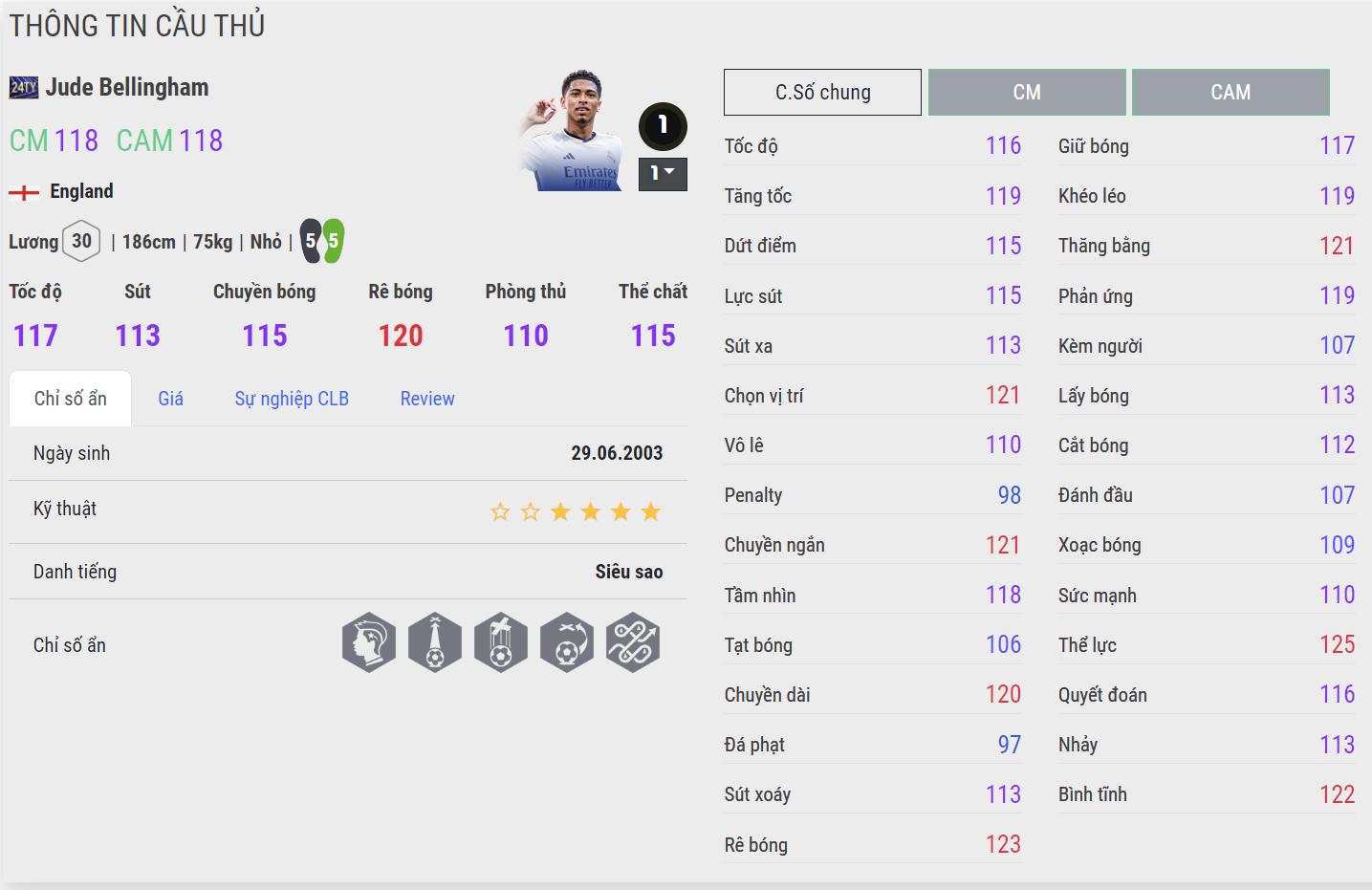 Dù được đánh giá rất cao với bộ chỉ số cũng thuộc hàng top đầu game, nhưng khi vào trận sự hiệu quả của Bellingham chỉ đủ để anh nằm ở vị trí thứ 4 trong bảng xếp hạng. Khả năng di chuyển, chọn vị trí của Bellingham là rất ổn khi tham gia tấn công. Tốc độ tốt cũng khả năng chuyền bóng cũng như xử lý bóng dẻo giúp Bellingham trở nên vô cùng linh hoạt. Tuy nhiên kỹ năng sút xa của cầu thủ người Anh chưa thực sự tối ưu được hiệu quả và khả năng phòng ngự vẫn còn thiếu một chút gì đó sự nhanh nhạy cần thiết.