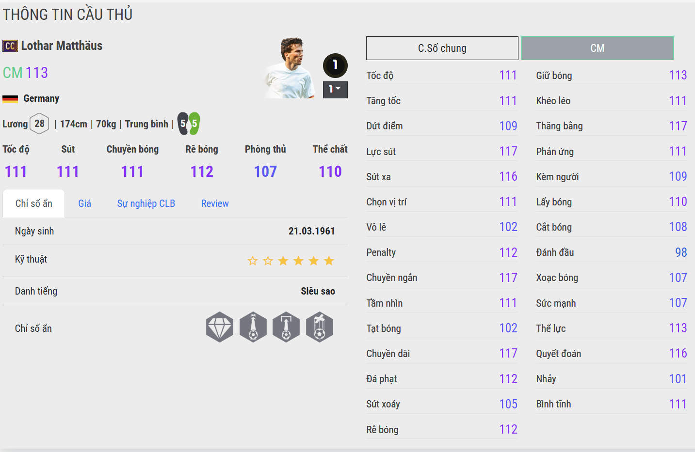 Matthäus CC là mẫu CDM toàn năng – người có thể vừa cầm nhịp, vừa tung ra những cú sút xa uy lực. Anh di chuyển linh hoạt, chuyền bóng chính xác và phản ứng nhanh trong mọi tình huống. Matthäus mang đến sự cân bằng hoàn hảo giữa chất thép và tính sáng tạo ở khu trung tuyến.