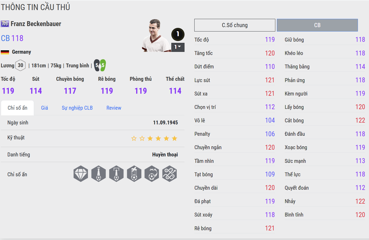 Beckenbauer WB đứng đầu bảng nhờ phong thái điềm tĩnh và khả năng đọc trận đấu siêu hạng. Anh không cần va chạm nhiều, chỉ cần di chuyển hợp lý và ra chân chính xác để hóa giải nguy hiểm. Ngoài ra, khả năng chuyền dài, phát động tấn công của Beckenbauer giúp anh trở thành “trái tim” của mọi đội hình thiên về kiểm soát và xây dựng bóng từ tuyến dưới.