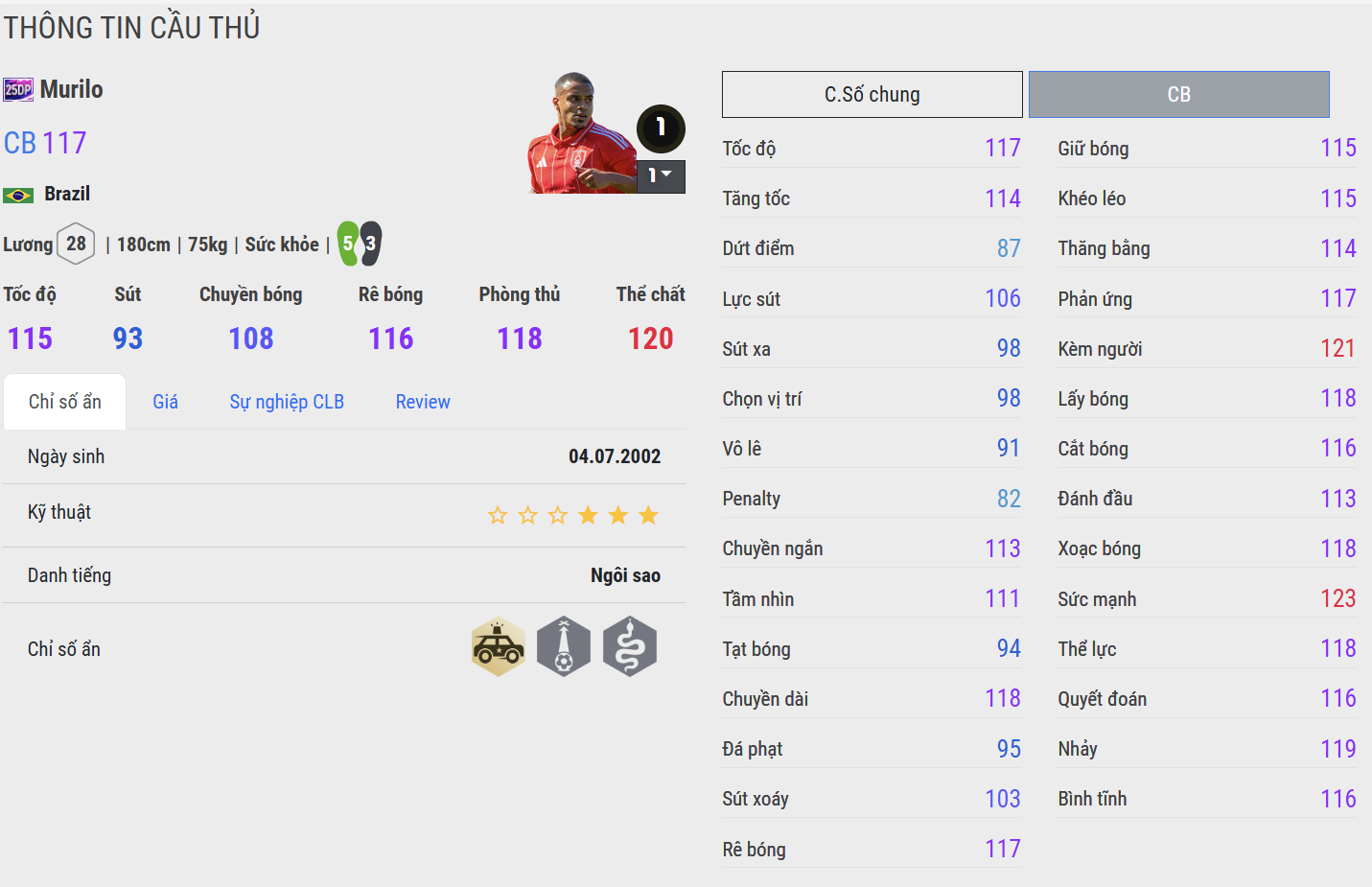 Các trung vệ 25DP không chỉ sở hữu bộ chỉ số phòng ngự vững chắc với khả năng tì đè, cắt bóng và không chiến ấn tượng, mà còn có sự điềm tĩnh và kinh nghiệm trong từng pha xử lý. Họ không cần quá hào nhoáng, nhưng luôn là chốt chặn đáng tin cậy, giữ vững thế trận và truyền cảm hứng cho toàn đội. Sở hữu một trung vệ 25DP trong đội hình đồng nghĩa với việc bạn có trong tay trái tim thép của hàng thủ – biểu tượng của sự tận tụy và ổn định trong mọi trận đấu.