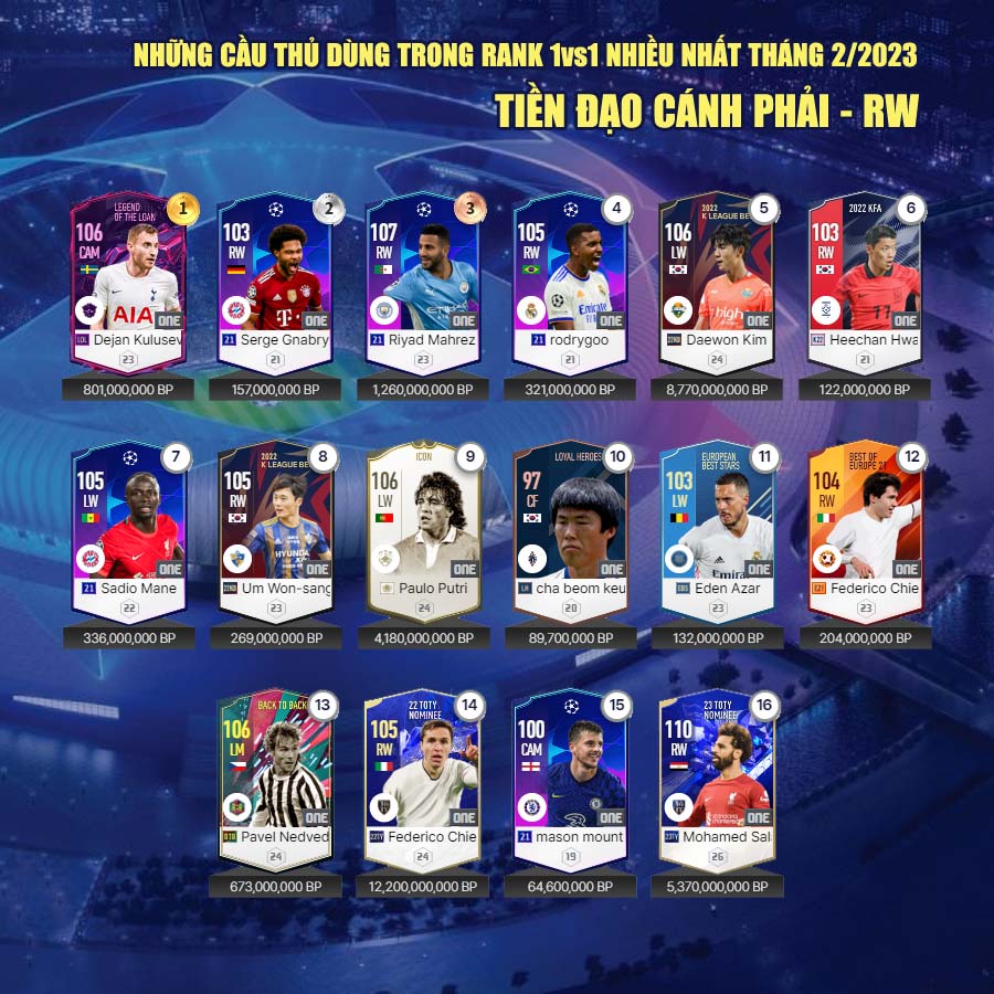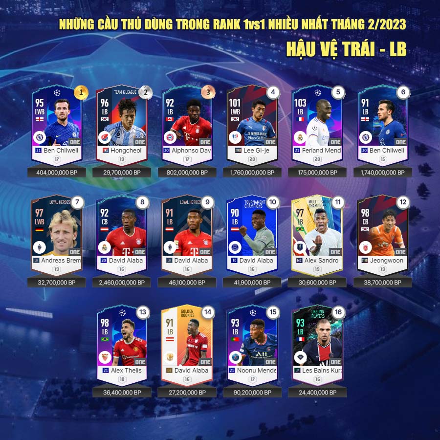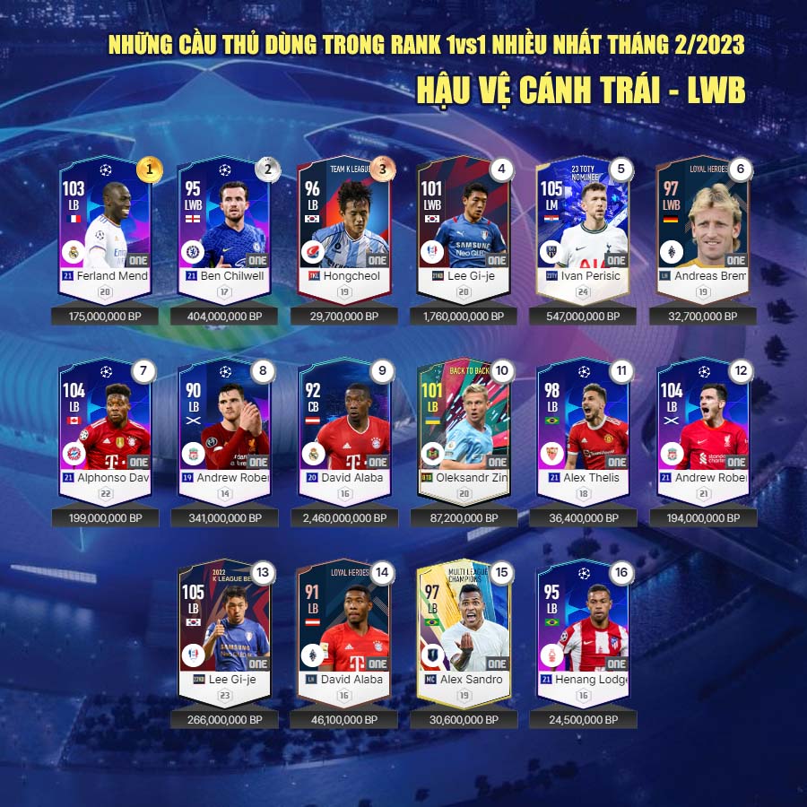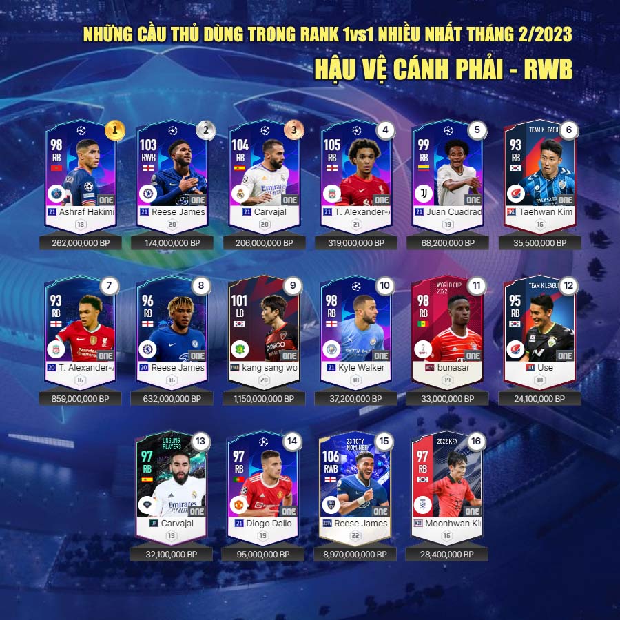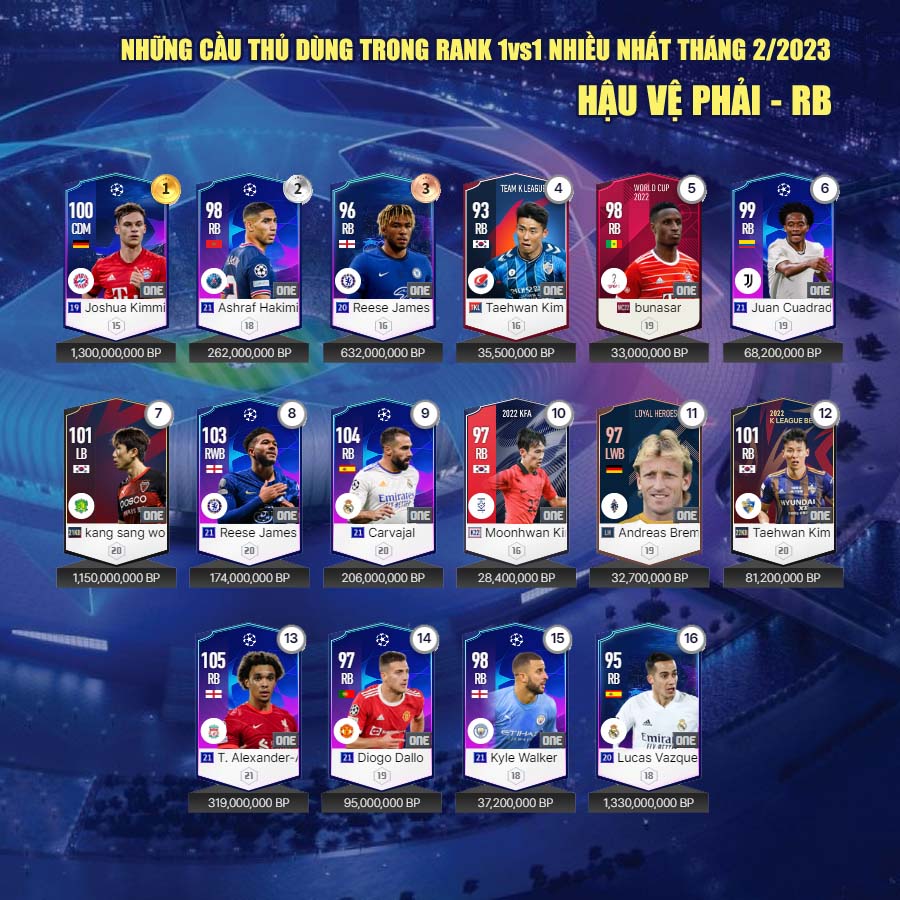 Tháng hai kết thúc sớm với 28 ngày, và cũng để chuẩn bị chào mừng mùa giải 22UCL chúng ta sẽ nhìn lại những gương mặt được nhiều HLV tin tưởng nhất trong tháng vừa qua. Các mùa giải như 19UCL hay 20UCL chắc chắn sau đó sẽ lùi dần lại để nhường cho chỗ cho 22UCL vào các tháng tiếp theo.