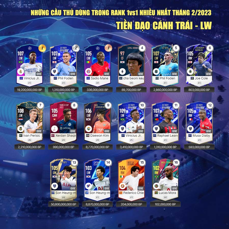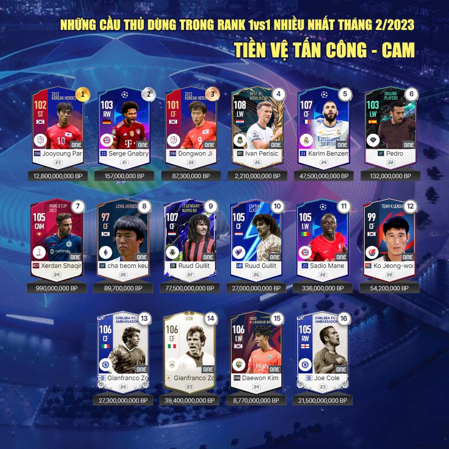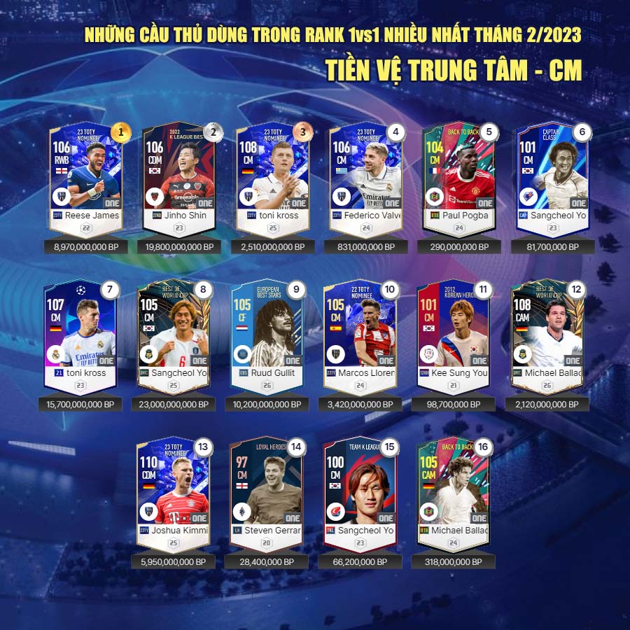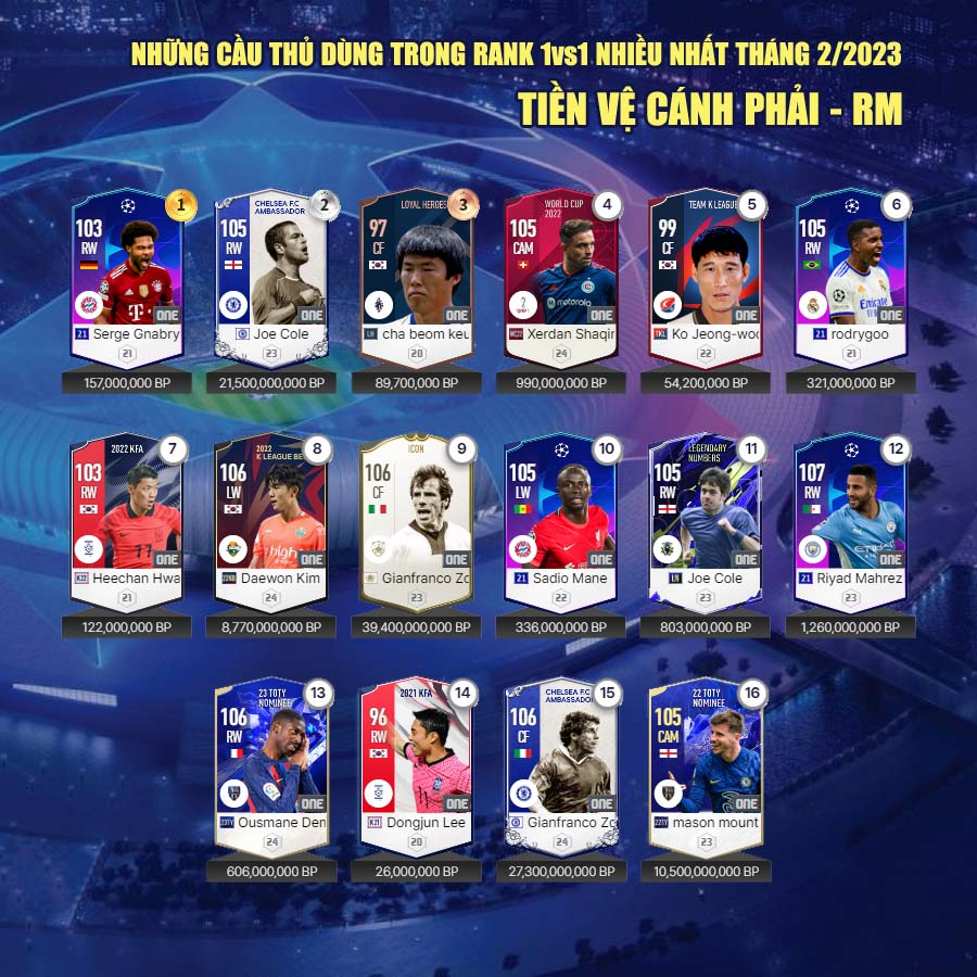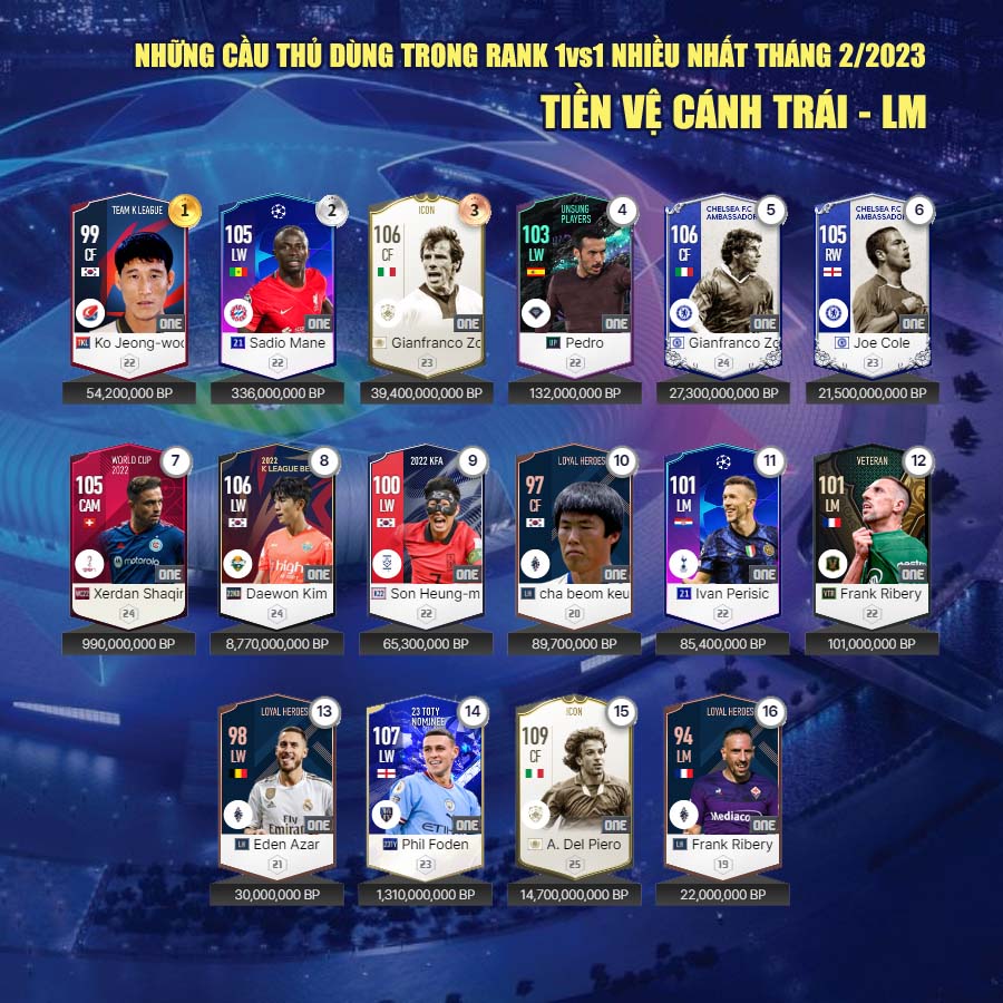 Tháng hai kết thúc sớm với 28 ngày, và cũng để chuẩn bị chào mừng mùa giải 22UCL chúng ta sẽ nhìn lại những gương mặt được nhiều HLV tin tưởng nhất trong tháng vừa qua. Các mùa giải như 19UCL hay 20UCL chắc chắn sau đó sẽ lùi dần lại để nhường cho chỗ cho 22UCL vào các tháng tiếp theo.
