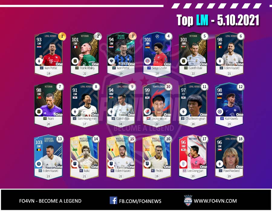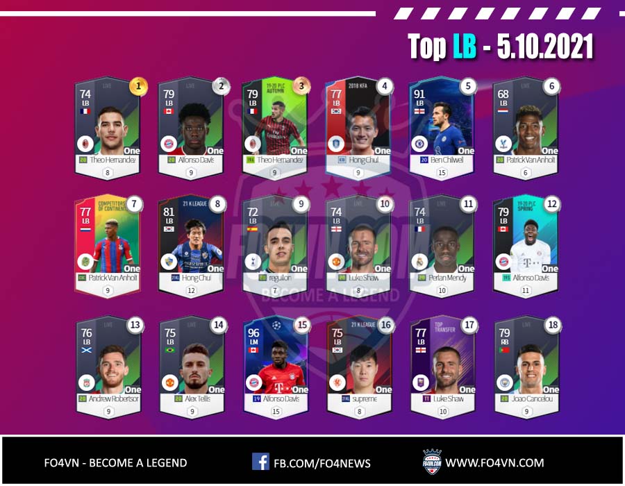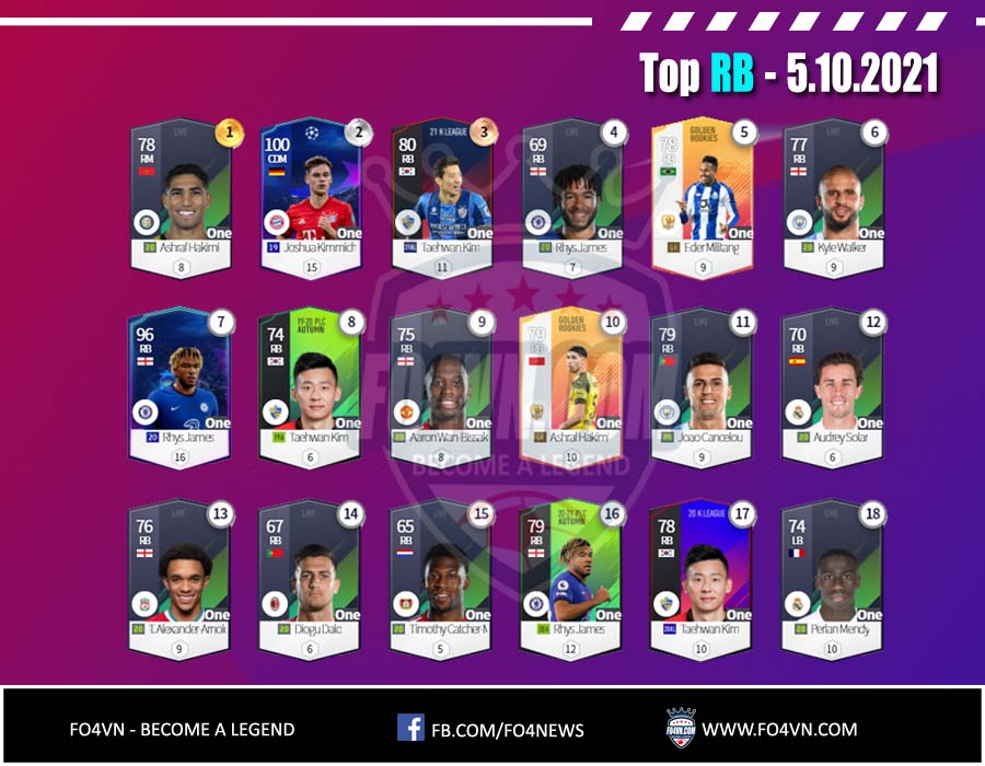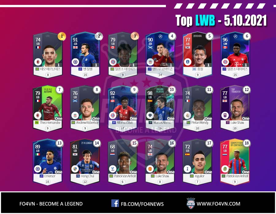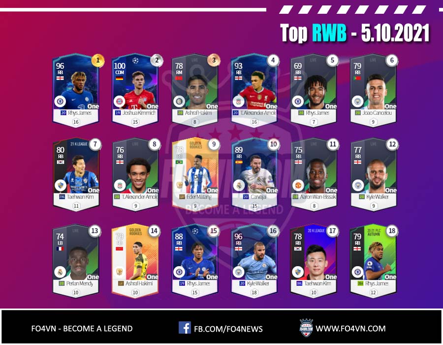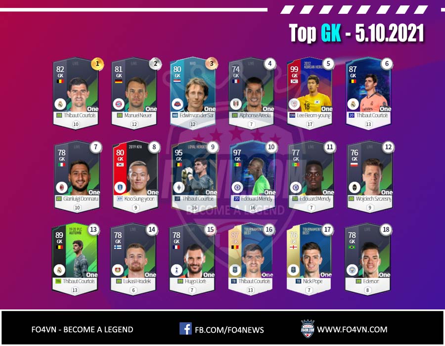 Đây là thống kê những cầu thủ được ưa chuộng nhất cho từng vị trí, trong rank xếp hạng 1vs1 có thứ hạng 1-5000