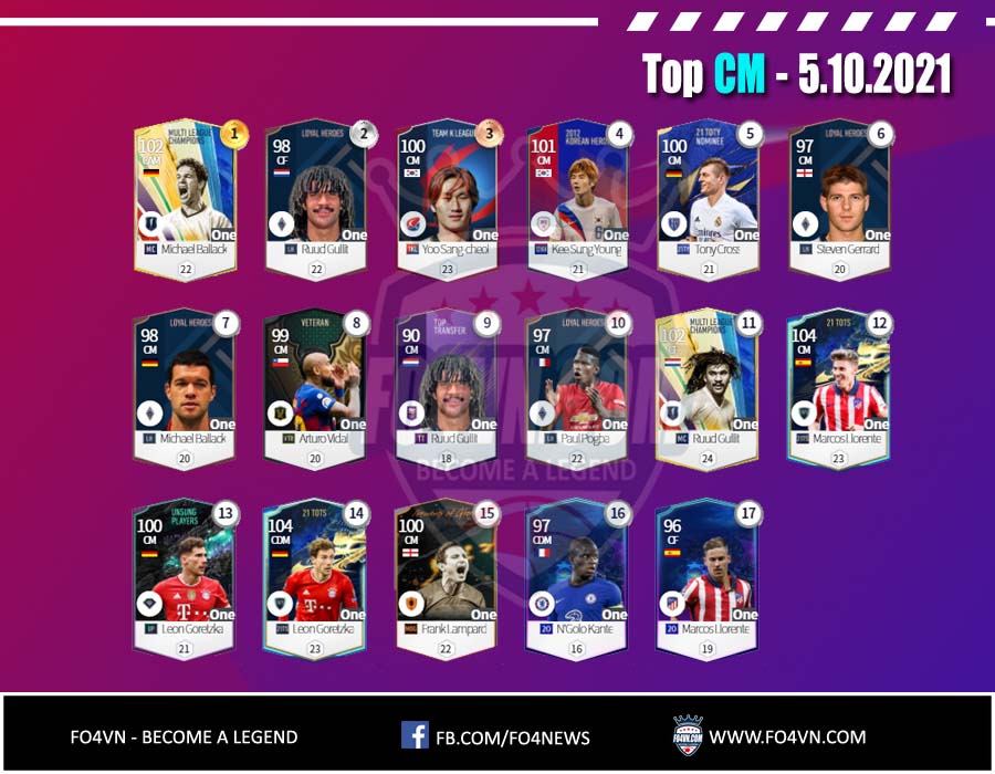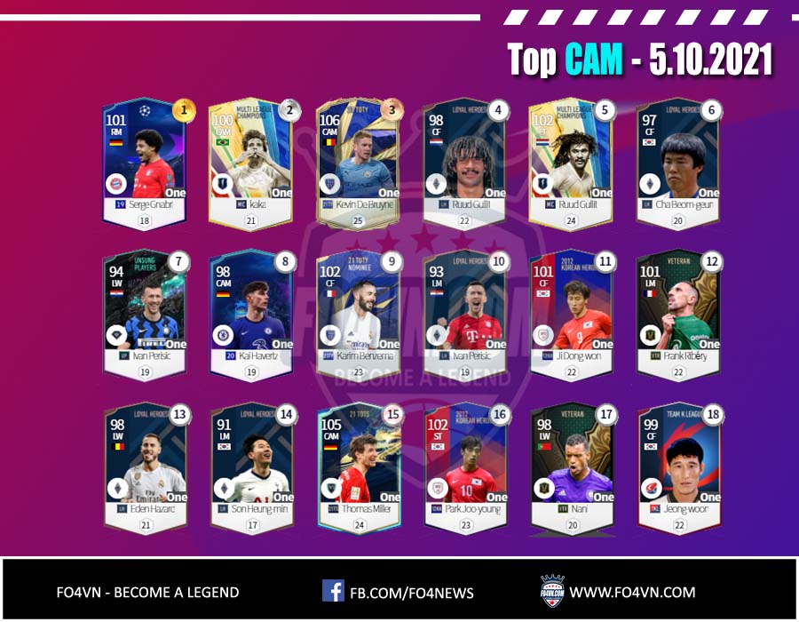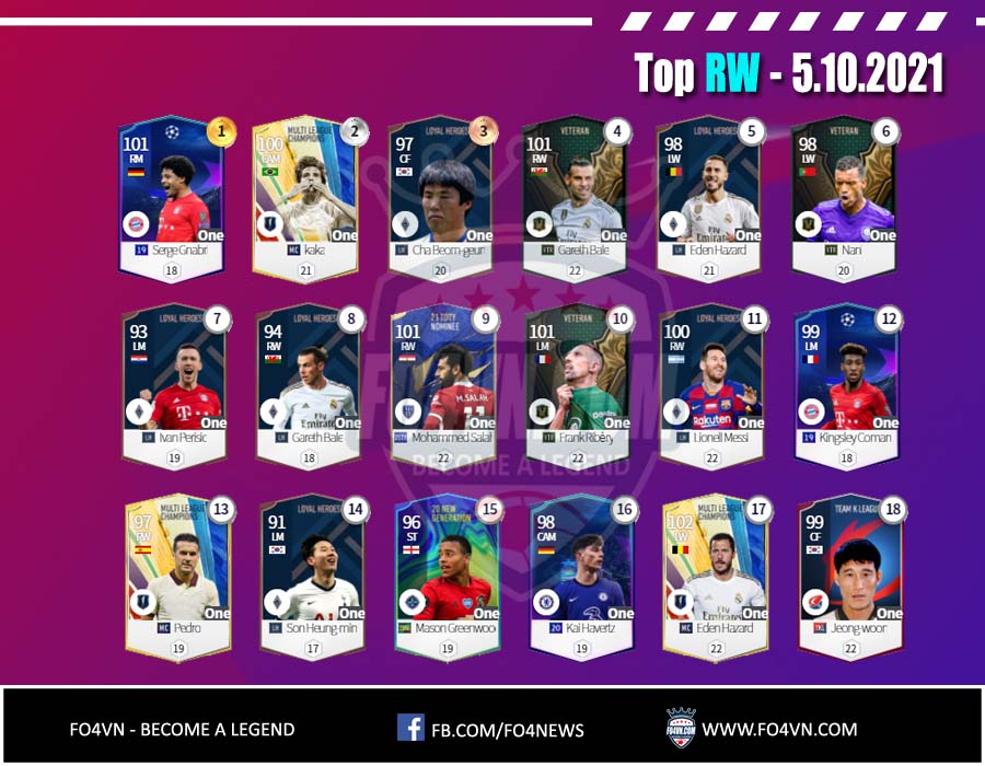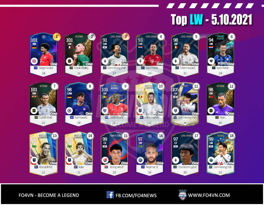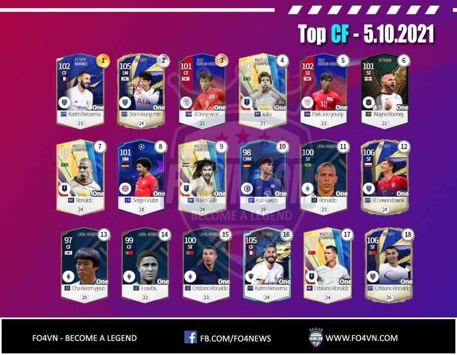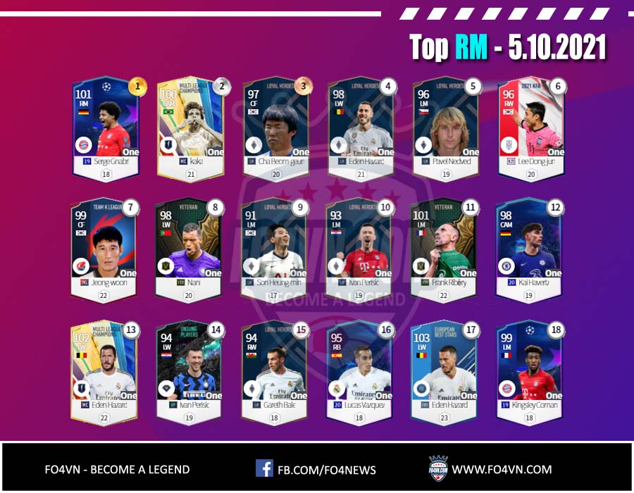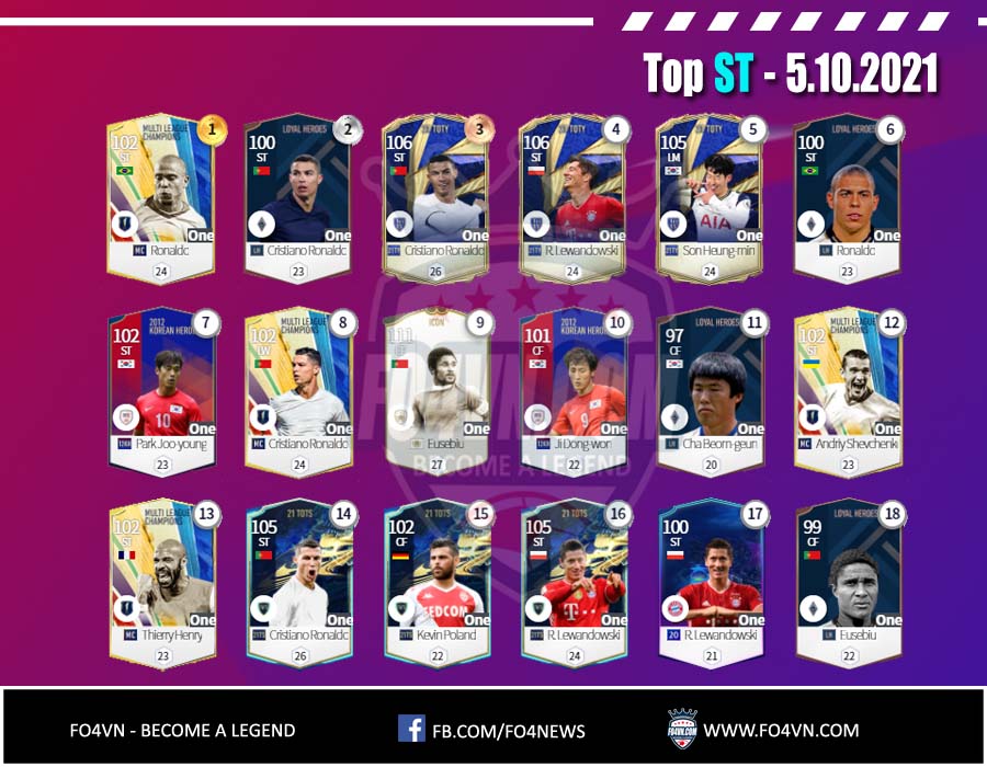 Đây là thống kê những cầu thủ được ưa chuộng nhất cho từng vị trí, trong rank xếp hạng 1vs1 có thứ hạng 1-5000