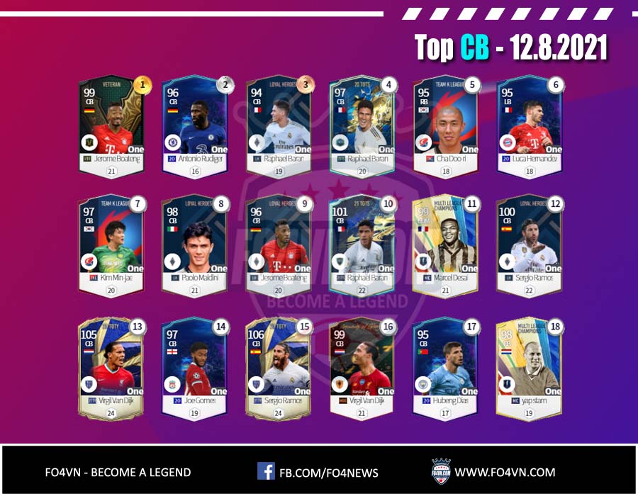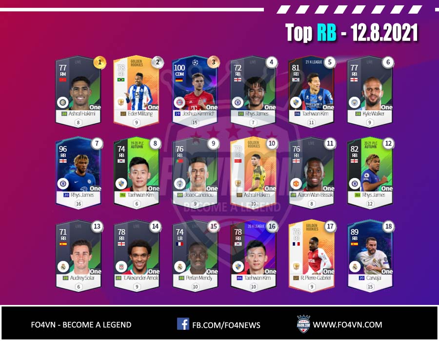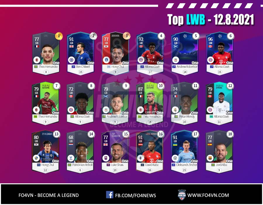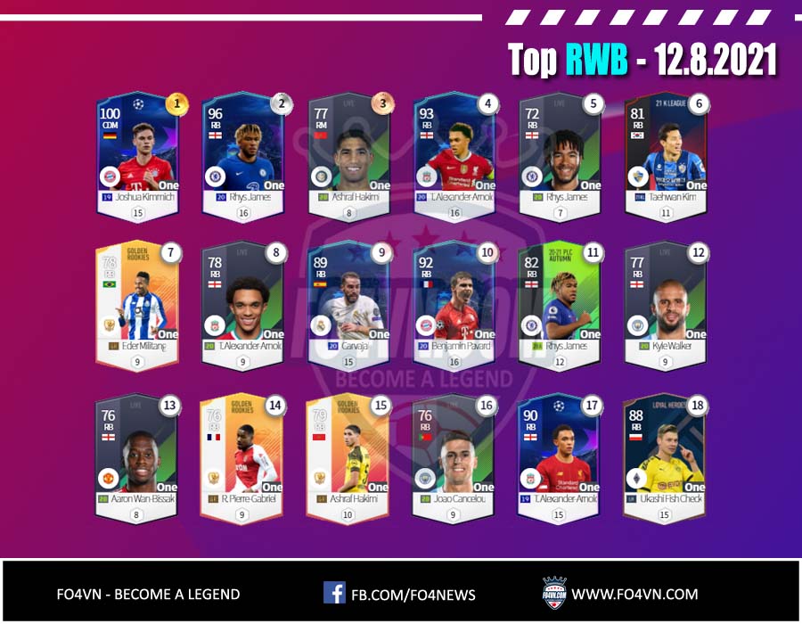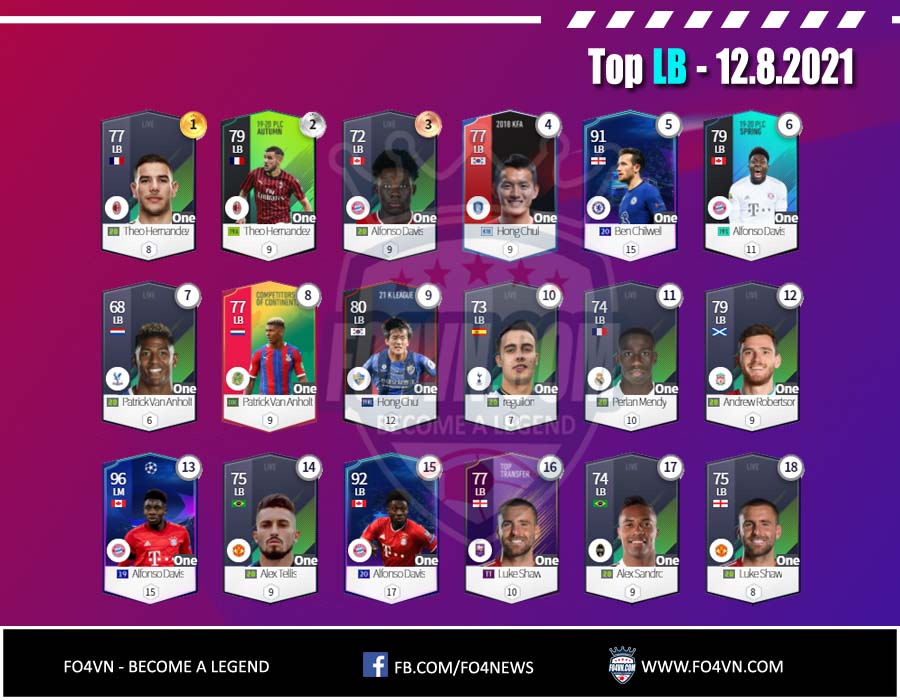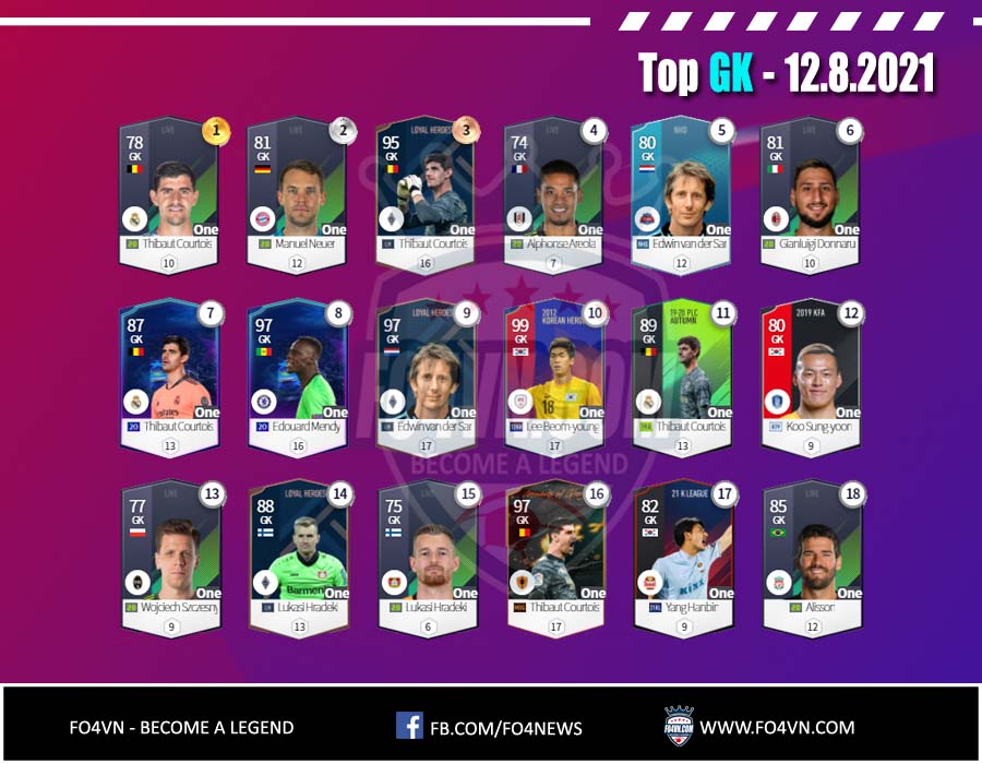 Fo4vn xin được gửi tới các bạn danh sách các cầu thủ từng vị trí được sử dụng nhiều nhất 28 ngày qua. Tính đến 12.8.2021 trong ranking 1vs1 Hàn Quốc. Danh sách này có thể thay đổi sau đó