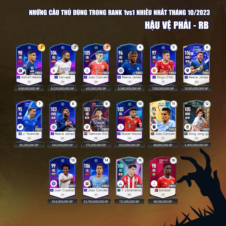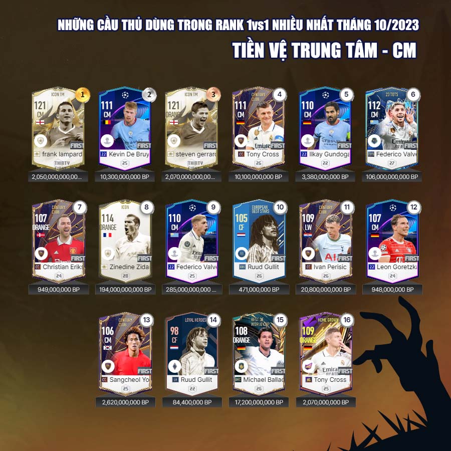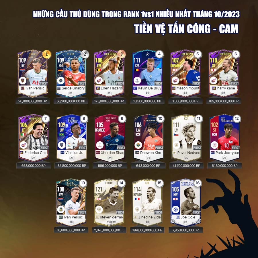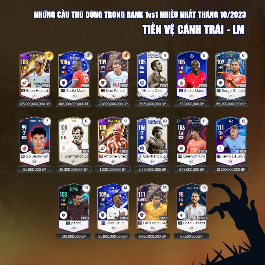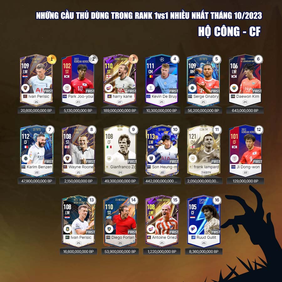 Tất nhiên vẫn có những cái tên mới trong mùa giải 23 Hard Worker dành được sự quan tâm của nhiều người chơi, đặc biệt là ở những vị trí hậu vệ cánh. Tháng 10, cũng đánh dấu sự bùng nổ của mùa giải CC với những tên như Ronaldo, Perisic... đây rõ ràng là những cầu thủ có độ hiệu quả cao nhất của mùa giải Century Club.
