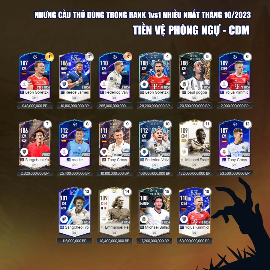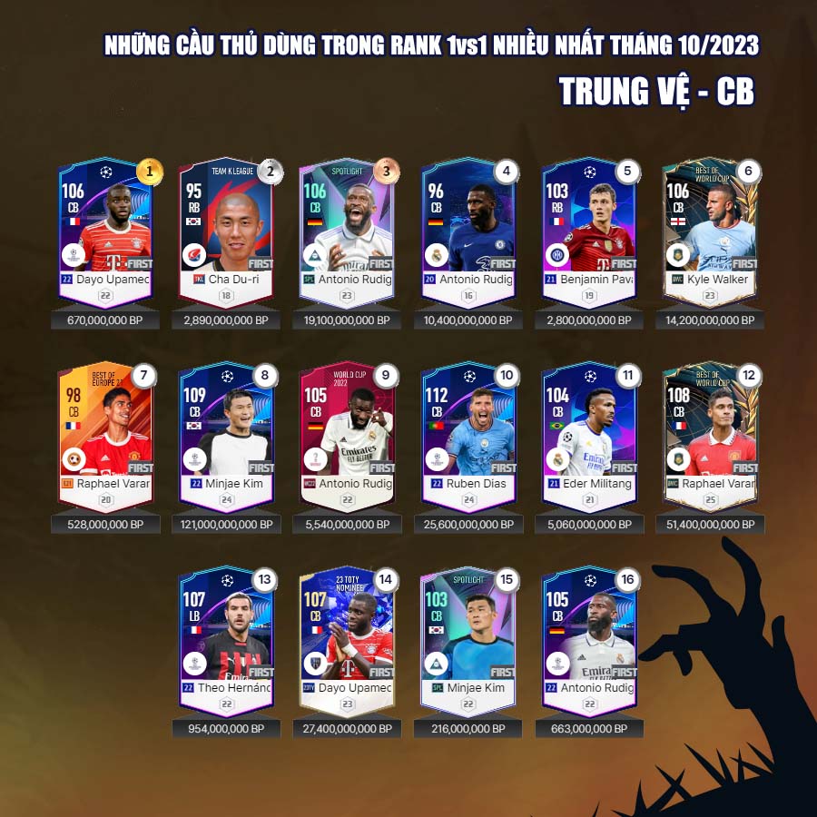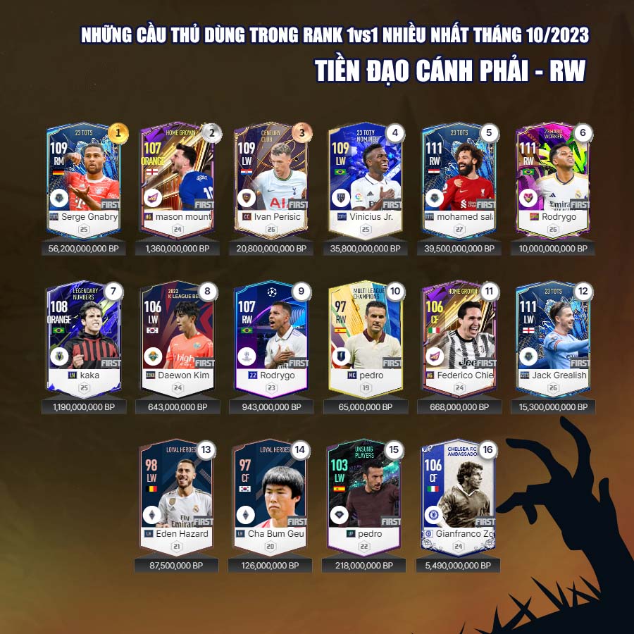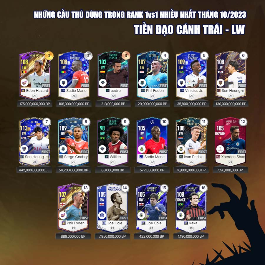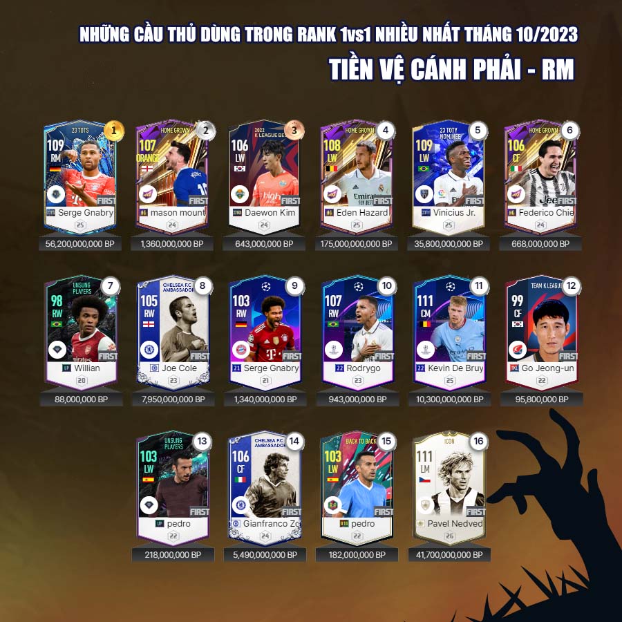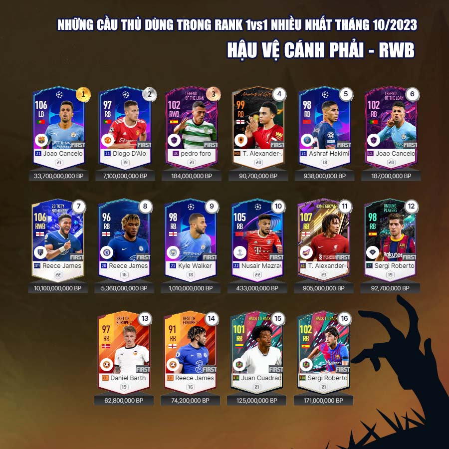 Tất nhiên vẫn có những cái tên mới trong mùa giải 23 Hard Worker dành được sự quan tâm của nhiều người chơi, đặc biệt là ở những vị trí hậu vệ cánh. Tháng 10, cũng đánh dấu sự bùng nổ của mùa giải CC với những tên như Ronaldo, Perisic... đây rõ ràng là những cầu thủ có độ hiệu quả cao nhất của mùa giải Century Club.